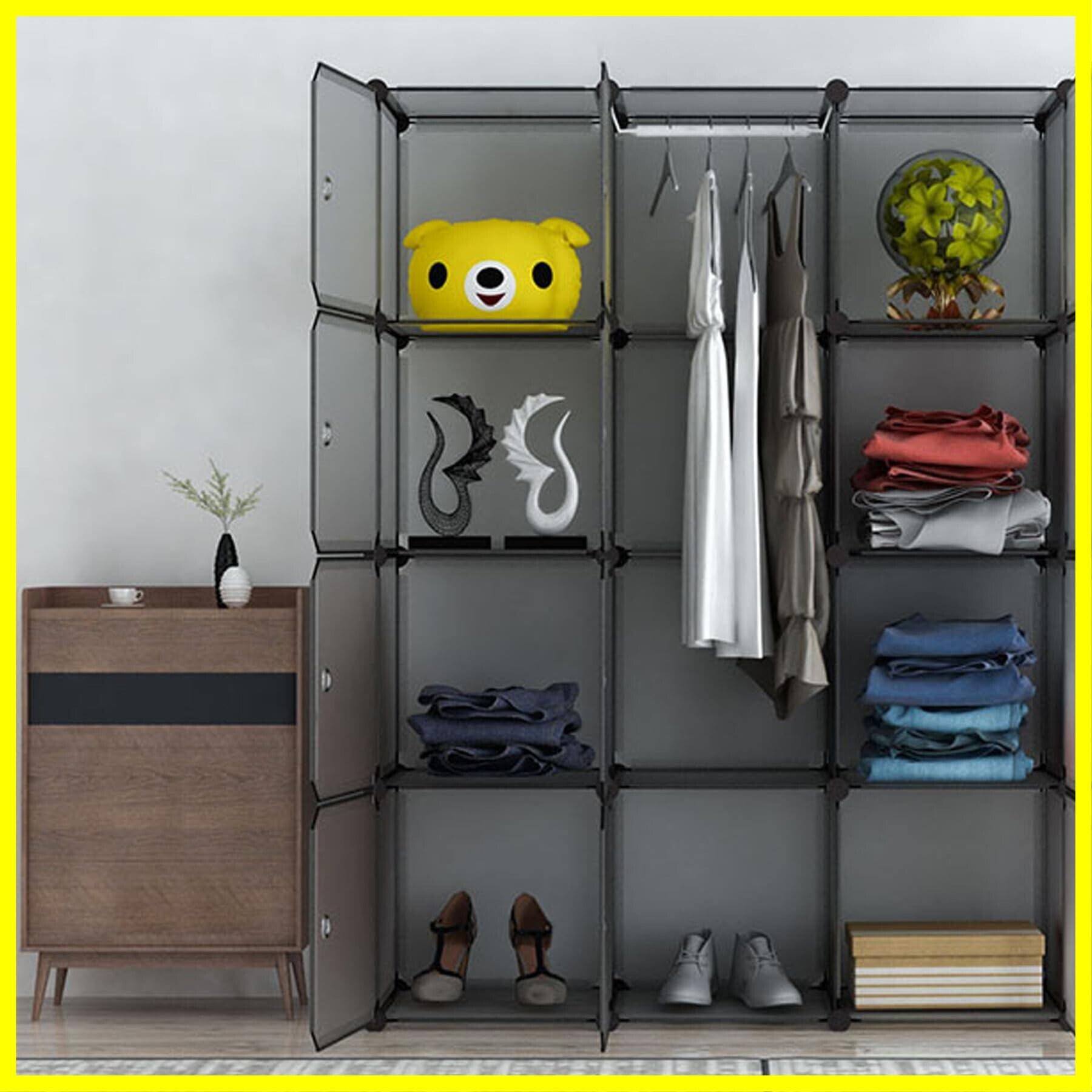AYO 収納棚 大容量 収納ラック 組み立て式 棚 ラック 簡単組立 整理棚収納 ボックス 本棚 衣類収納 耐久性 省スペース スチール性 インテリア おしゃれ 多用途 (扉付き 半透明ブラック,12ボックス(35×35×35cm))