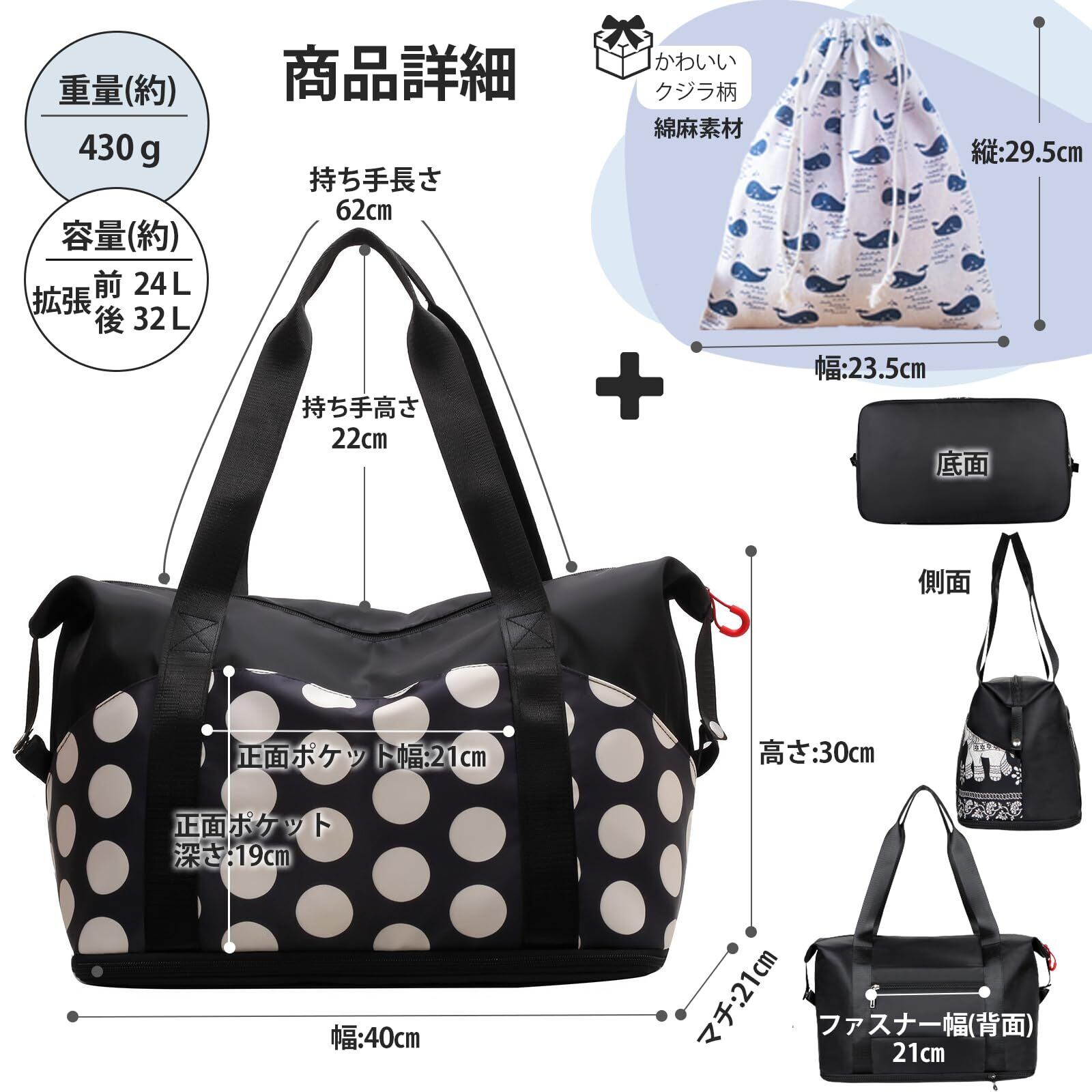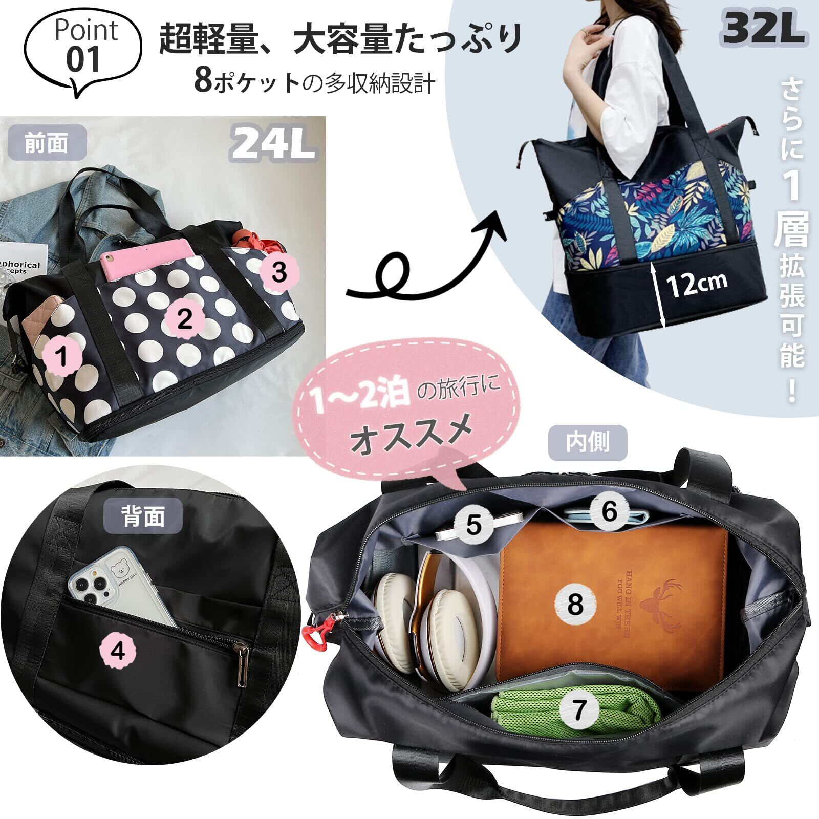 【たっぷり24L~32L 大容量の収納力】1~2泊の旅行、出張、ジム通い、スポーツ用、入院用バッグにオススメの大容量ボストンバッグ。普段はトートバッグとしても使えるし、旅行先で荷物が増えたときさらに1層(12㎝)8L拡張可能!大容量なのに超軽量430g、旅先での心強い味方。