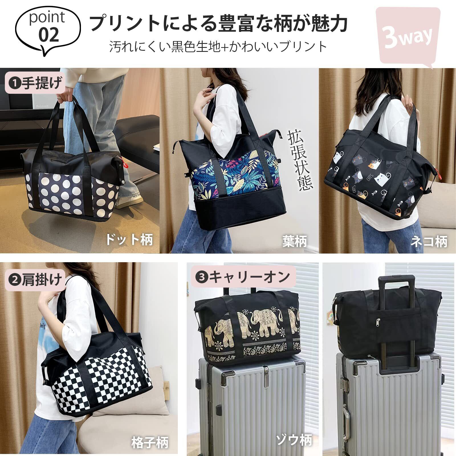 旅行バッグ ボストンバッグ かわいい 大容量 軽量 小さめ トートバッグ キャリーオンバッグ トラベルバッグ 旅行カバン レディース メンズ 旅行 機内持ち込み 修学旅行 出張 入院 おしゃれ 2泊 1泊 拡張可能 JS23AA013 (葉柄)