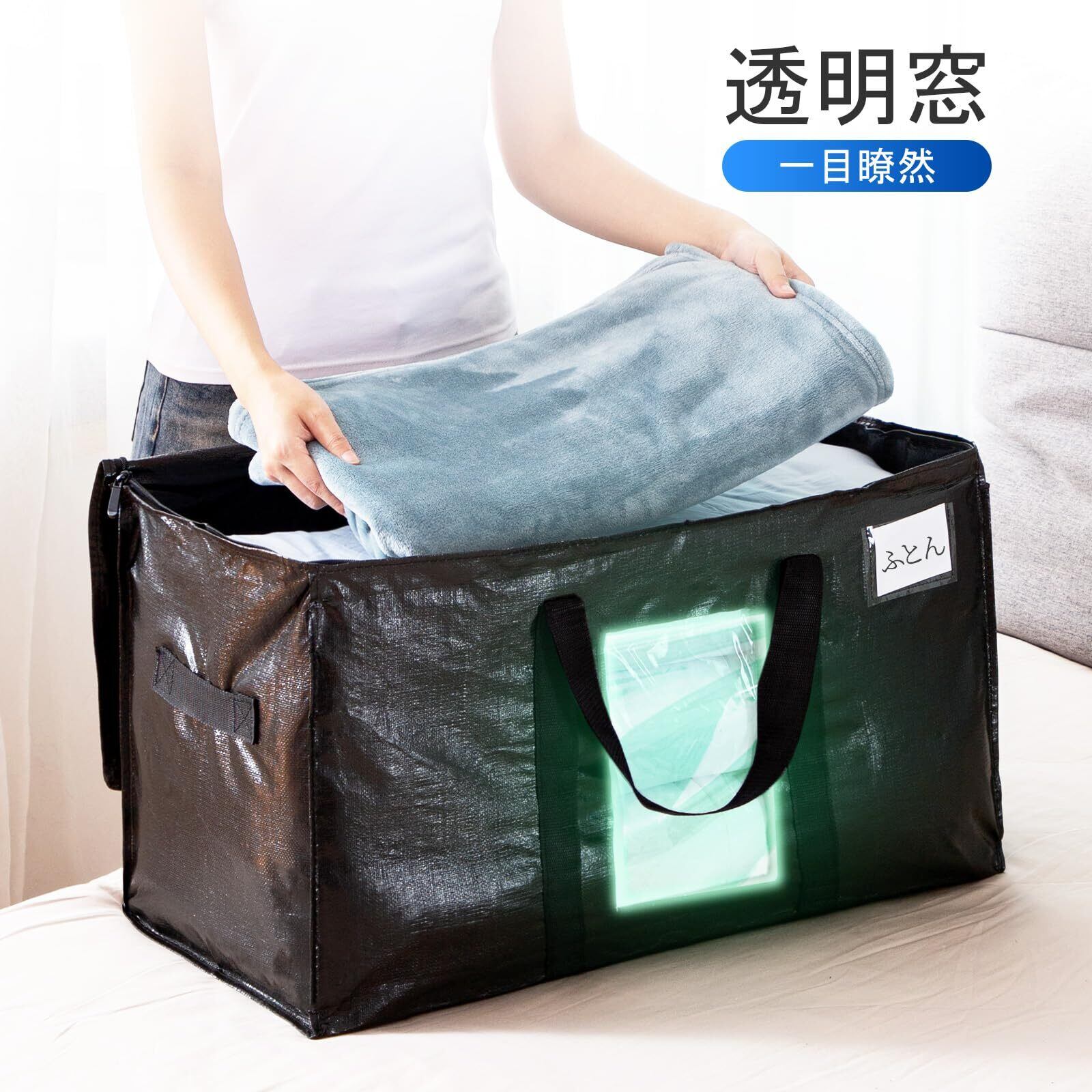 TAILI 大きいバッグ 布団収納袋 引越しバッグ 収納ケース 特大容量 透明窓 持ち手付き 衣装ケース 洋服 羽毛布団 防塵防水 折りたたみ式 カバン 省スペース 引っ越し 背負える キャンプ 旅行 耐荷重 ブラック 4個セット 100L