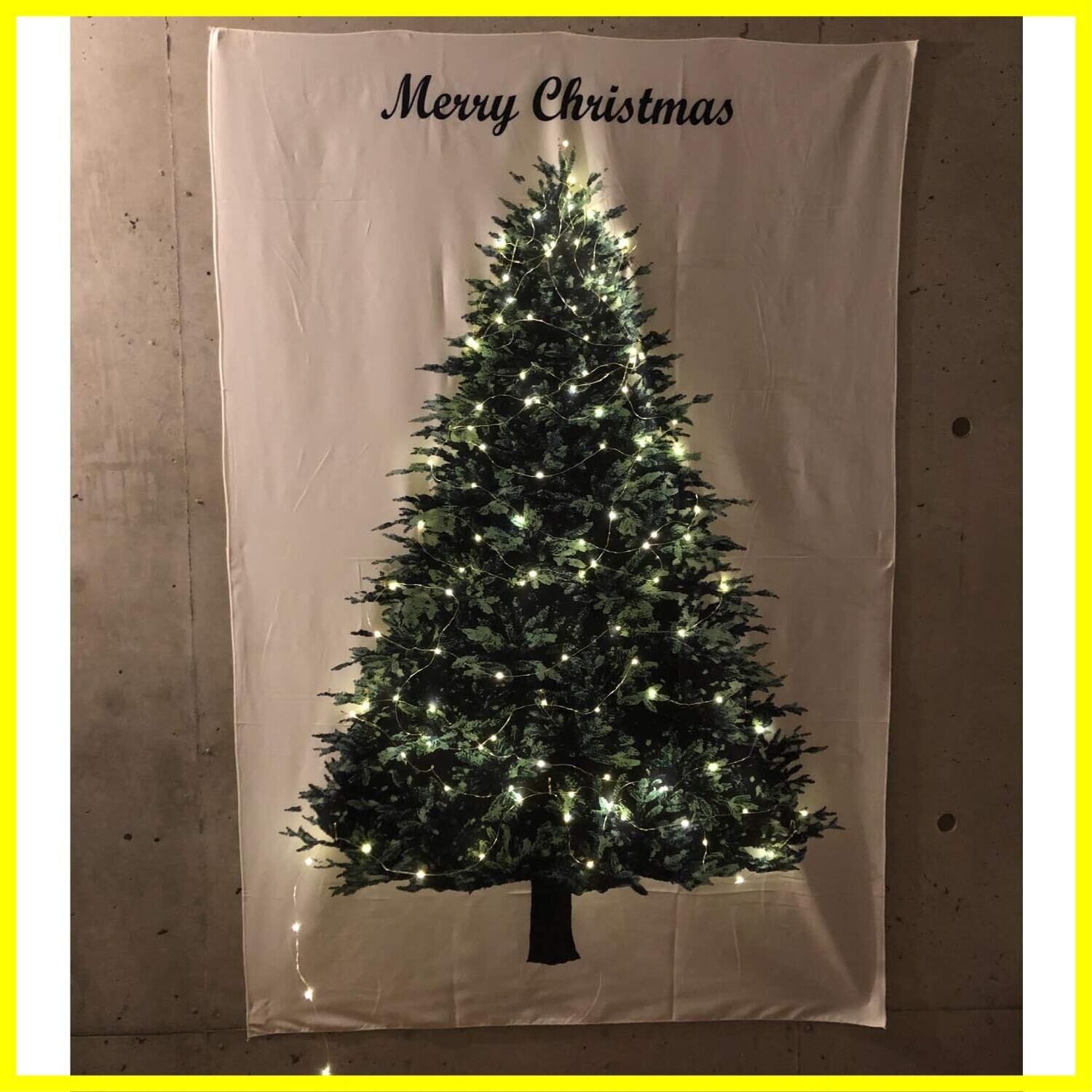 クリスマスツリータペストリー【クリスマスツリーがプリントされたポリエステル生地のタペストリーです。】場所を取らない部屋の隅や階段、廊下の壁など、クリスマスの飾り付けを楽しめます。高さ150 cm ×100 cmのサイズは存在感があり、気軽に仕上げられるサイズです。セットの照明でクリスマス気分を演出できますが、画鋲や安全ピンでお好みの飾り付けができます。アクセサリーを飾ると立体感が出て、より華やかになります。LEDライトの輝きで写真を撮ることができます。snsでの投稿をお勧めします。