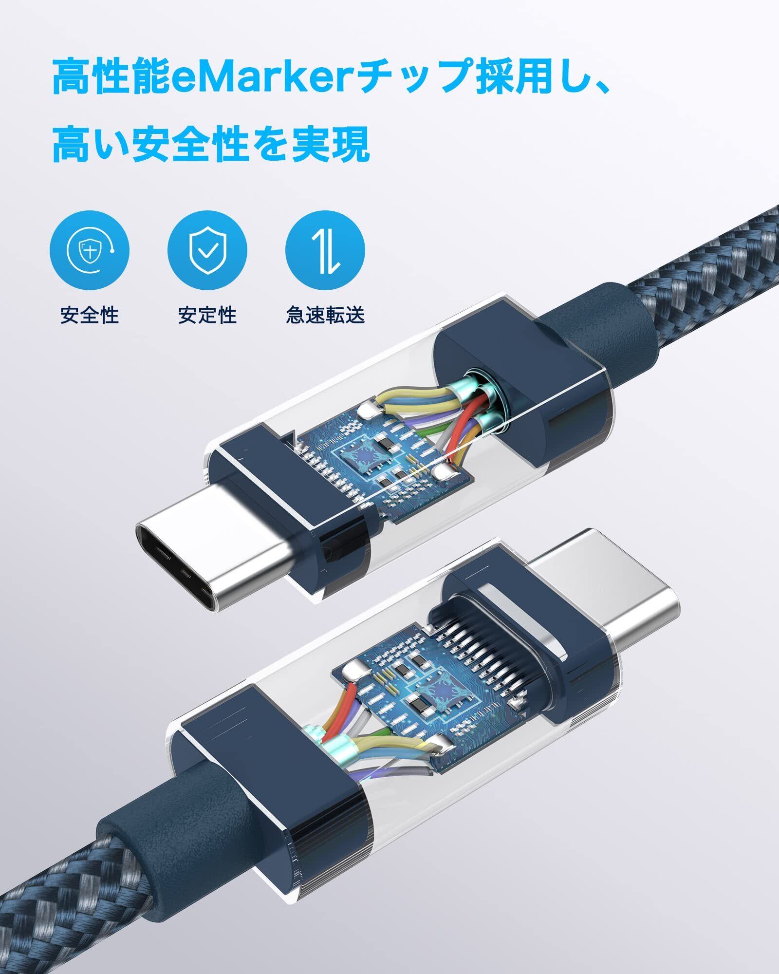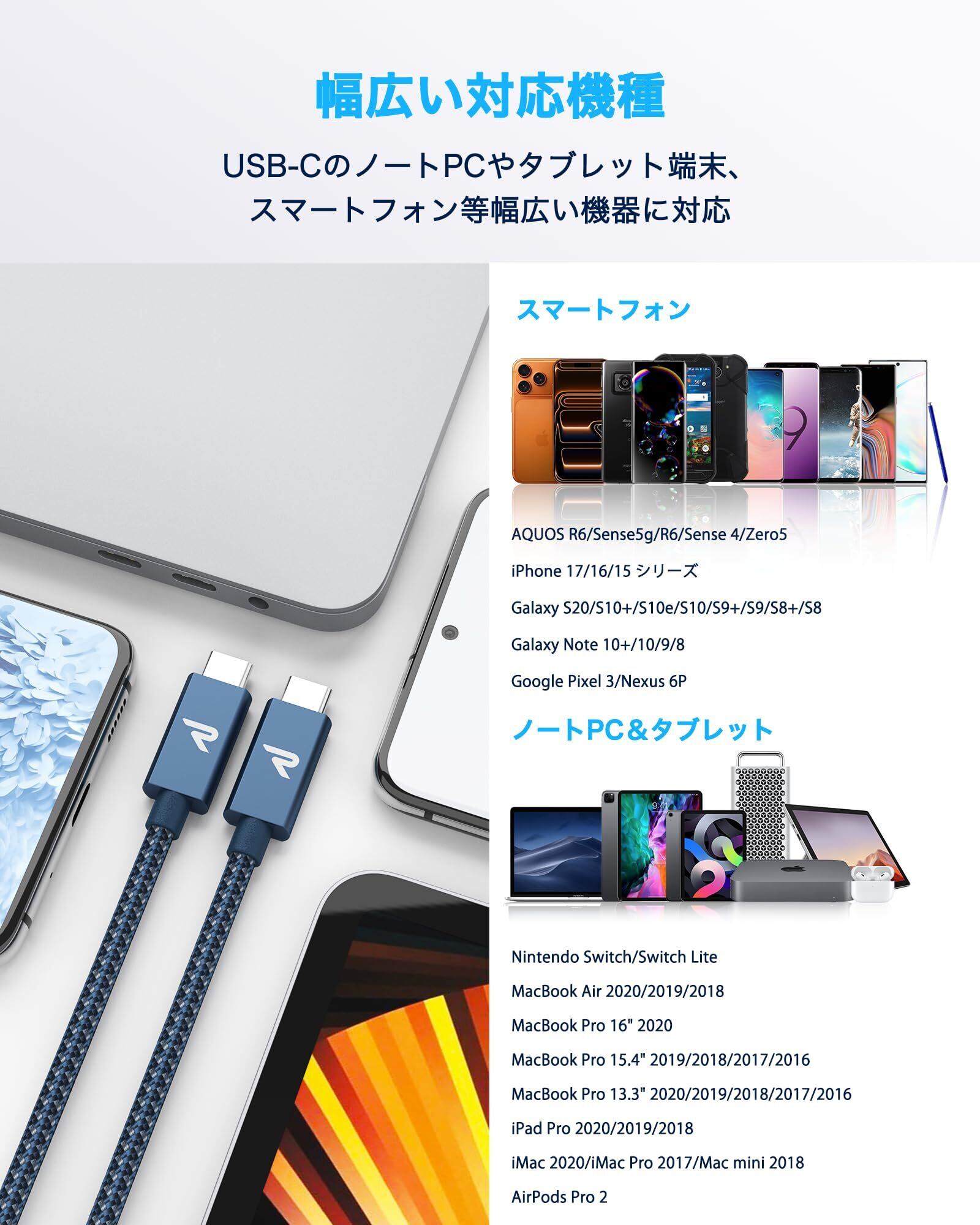 RAMPOW USB C ケーブル【100W PD対応/USB 3.2 Gen 2x2-20Gbpsデータ転送】PD3.0/QC3.0超高速充電 4K/60Hz 映像出力対応 超高耐久 iPhone17/Air/16/16e/15 充電ケーブル MacBook Pro/iPad Pro/Google Pixel/Galaxy等タイプC対応 在宅勤務/出張支援 ネイビー 1M
