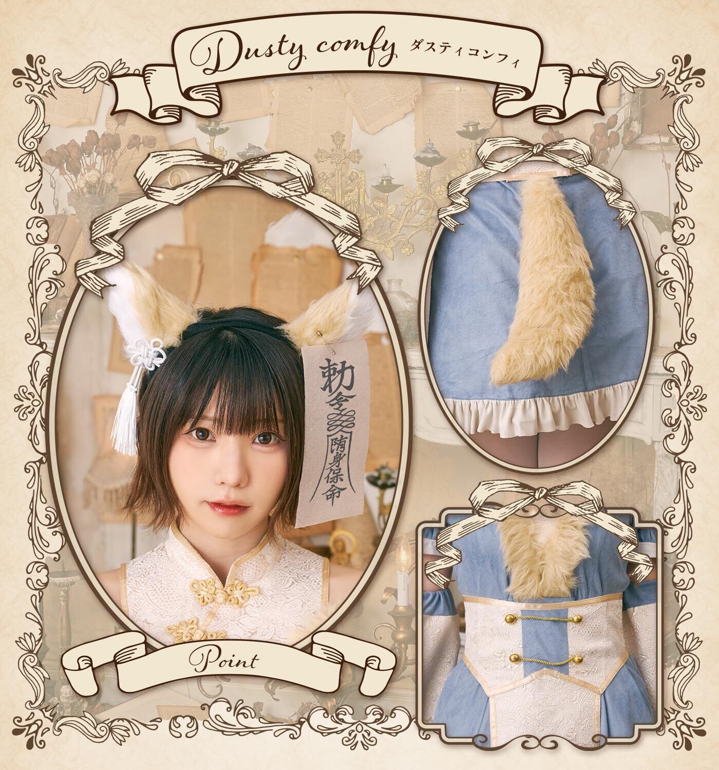 セット内容:カチューシャ、お札、ワンピース、付け袖、コルセット、しっぽ(ピン付き)