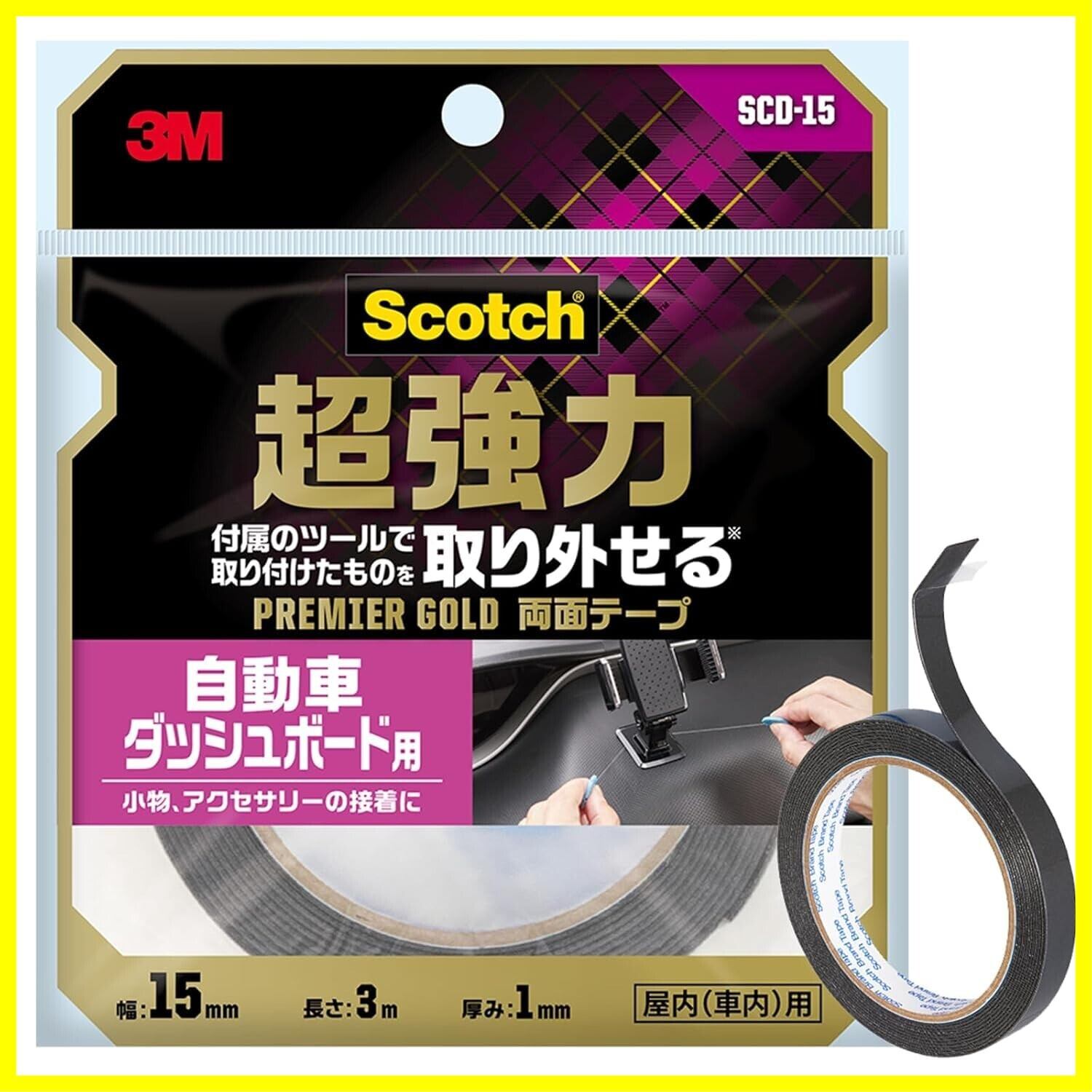 3M 両面テープ 超強力 自動車ダッシュボード用 取り外せる 幅15mm 長さ3m スコッチ SCD-15 セミロング プレミアゴールド