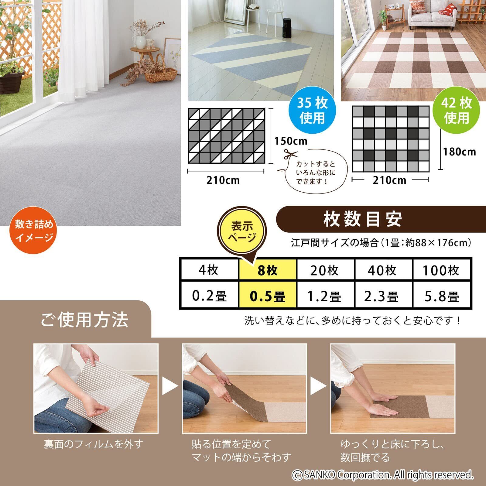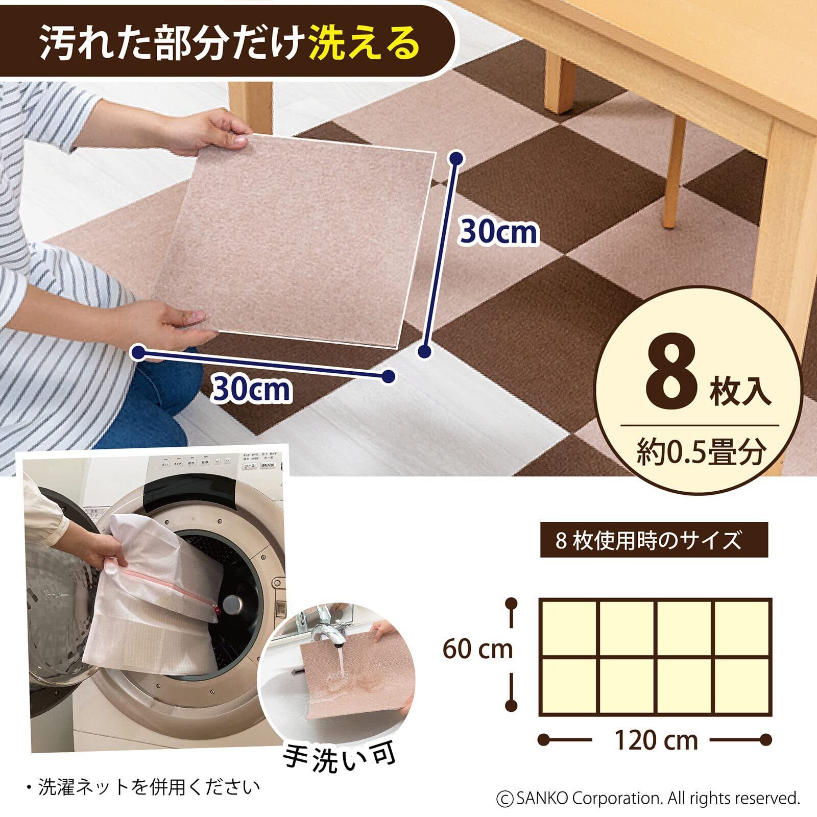 【0.5畳分】 サイズ : 8枚組〈約0.7㎡〉 30×30cm(厚み4mm)、重量:50g(1枚)