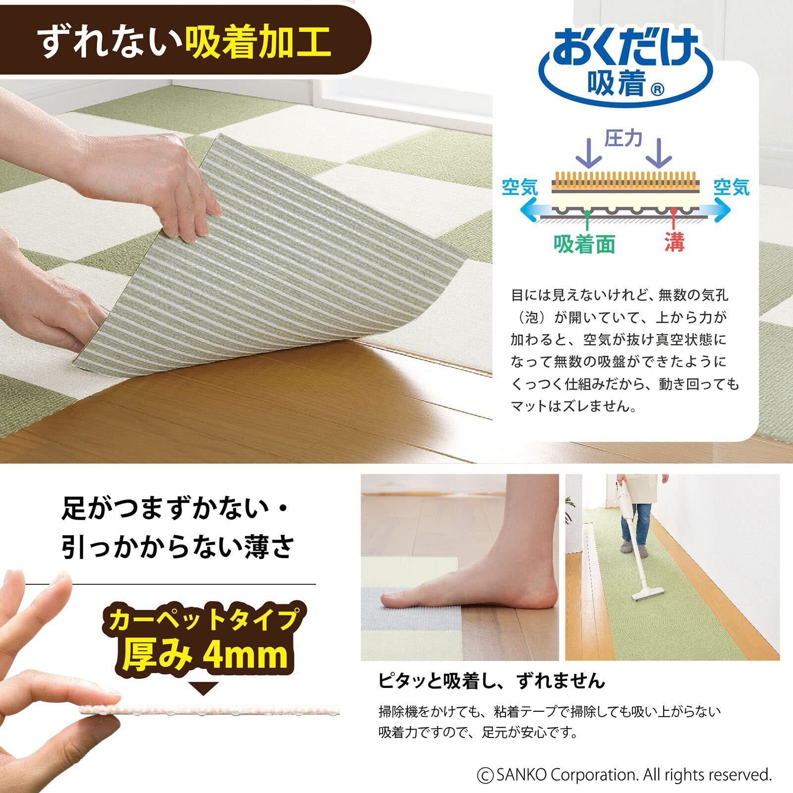 Sanko 【日本製 撥水 消臭 洗える】サンコー ずれない タイルカーペット ペット用 30×30cm グリーン 8枚 カーペットタイプ おくだけ吸着 タイルマット ジョイントマット KN-13