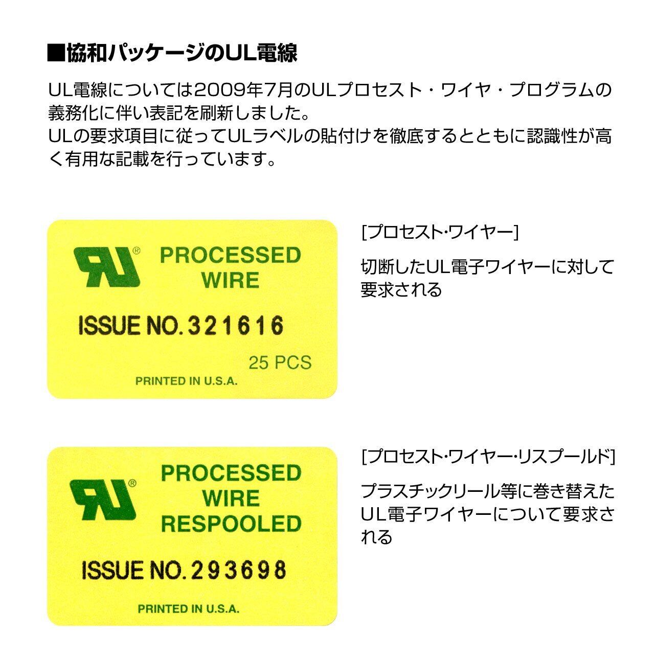 こちらの全製品にULプロセストワイヤーの認証シールを貼り付けています。