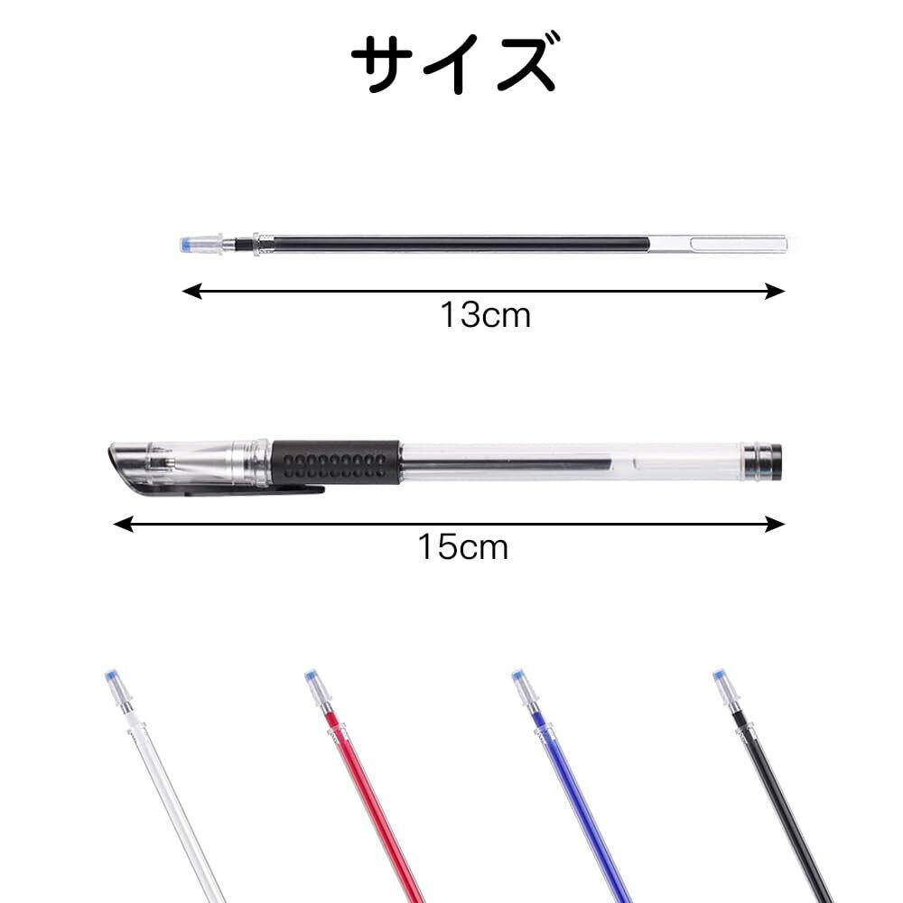 パッケージ内容:黒、赤、白、青替芯各5枚、共20枚、ペン軸4枚付き。
