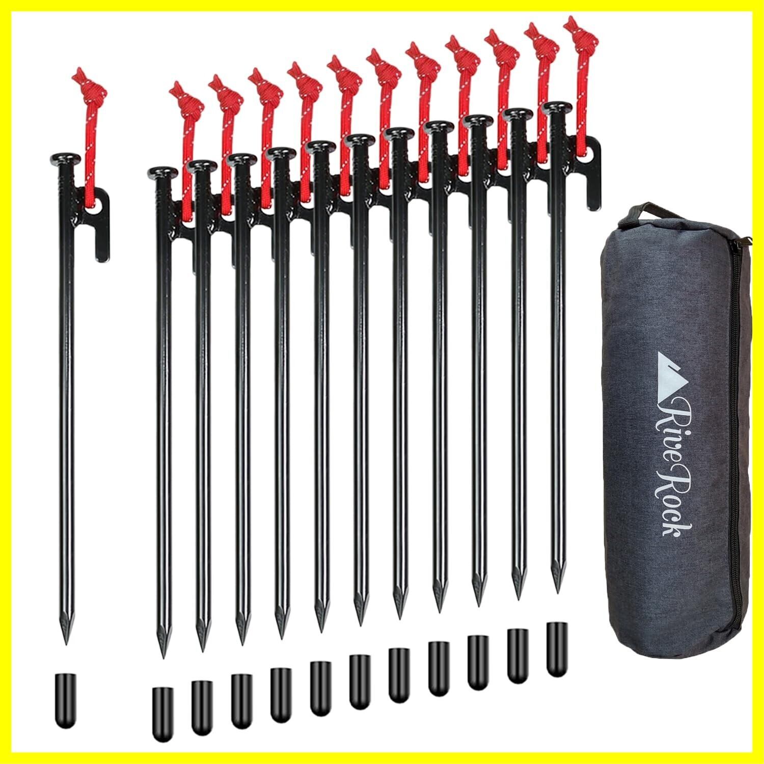RiveRock(リバロック) 30cm ペグ 収納 バック テント タープ スチールペグ 反射ロープ 安全キャップ付き
