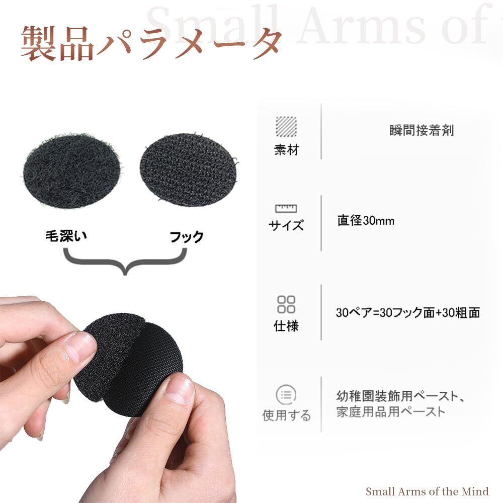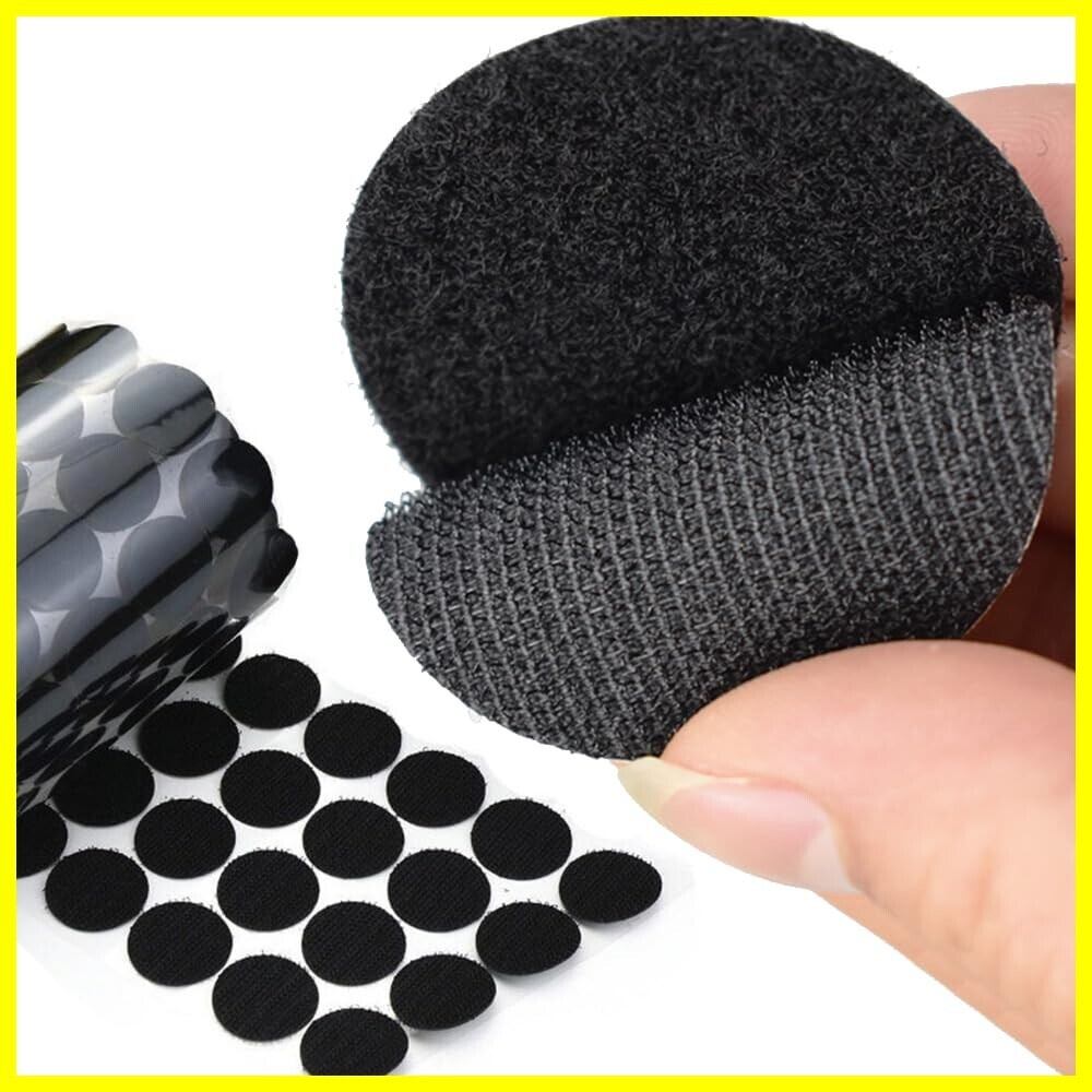 面ファスナー 丸型 強力 マジック付きテープ 両面テープ付き 粘着テープ 円形 粘着力強い両面テープ オス メス 強粘着裏糊付 超強力 粘着 耐熱 防水 業務用 DIY用 家庭用 (ブラック, 30mm)