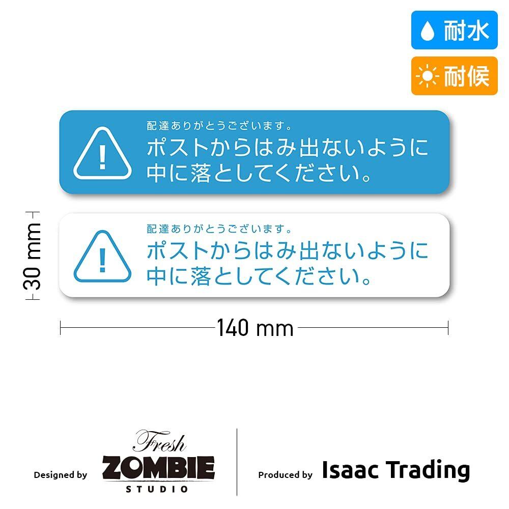 郵便受け はみ出し 防止 ステッカー ポストからはみ出ないように中に落としてください シール 郵便受けサイズ (140×30mm) (ブルー 2色セット)