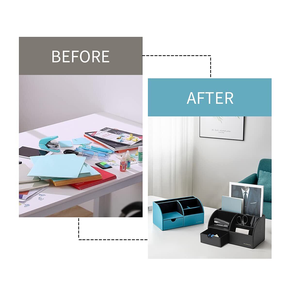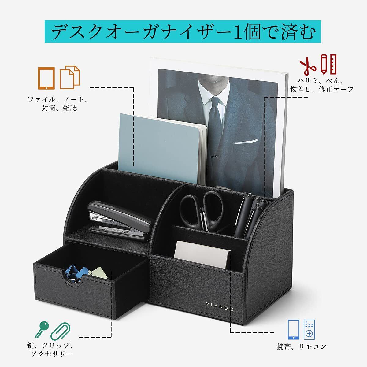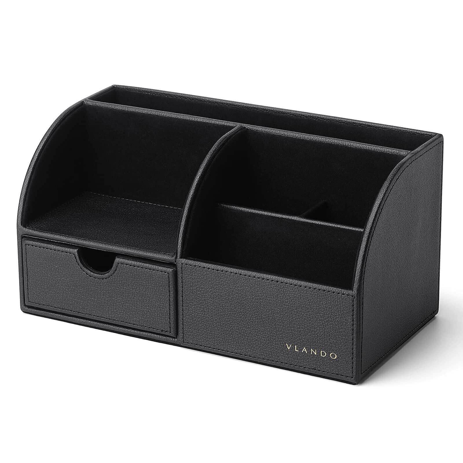 Vlando デスクオーガナイザー 卓上収納 ペン立て リモコンラック ペン立て 小物入れ (ブラック)