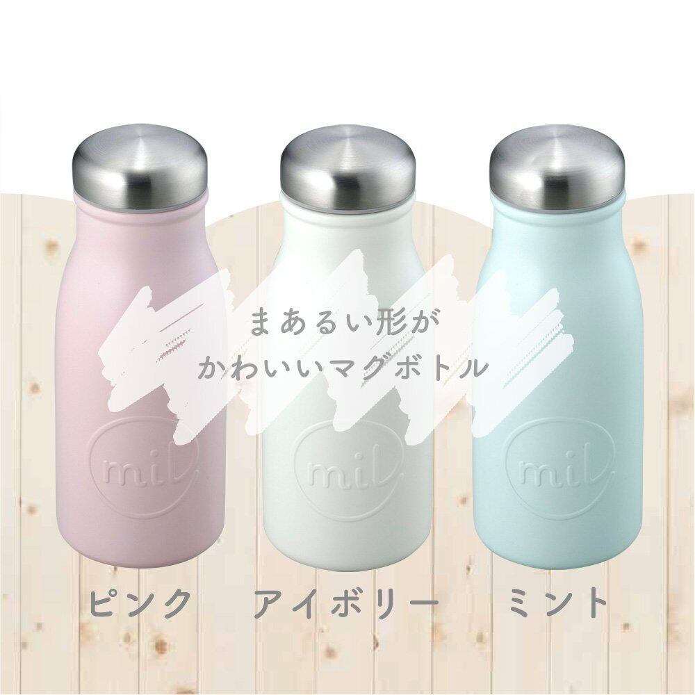 牛乳ビンみたいなまあるい形がかわいいマグボトル。真空断熱構造で保温も保冷もOK。持ち運びやすい容量350ml。