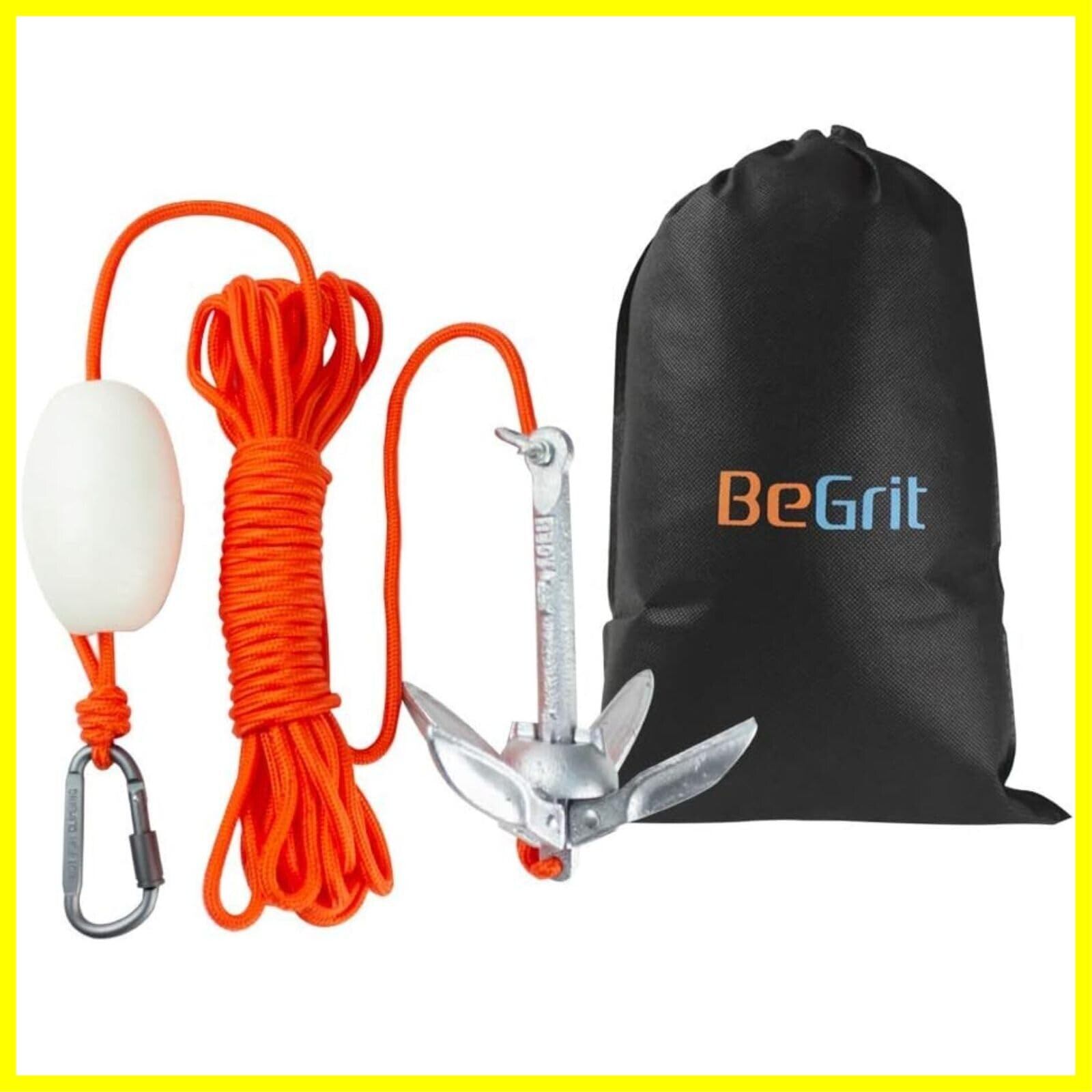 BeGrit カヤックアンカー セットボートアンカー0.7/1.5KG 船用アンカー 折り畳み アンカー 6mm 10m アンカー牽引ロープ 小型ボート SUP 浅湖 釣り アンカーキット アルミDリング ブイボール 収納袋付き