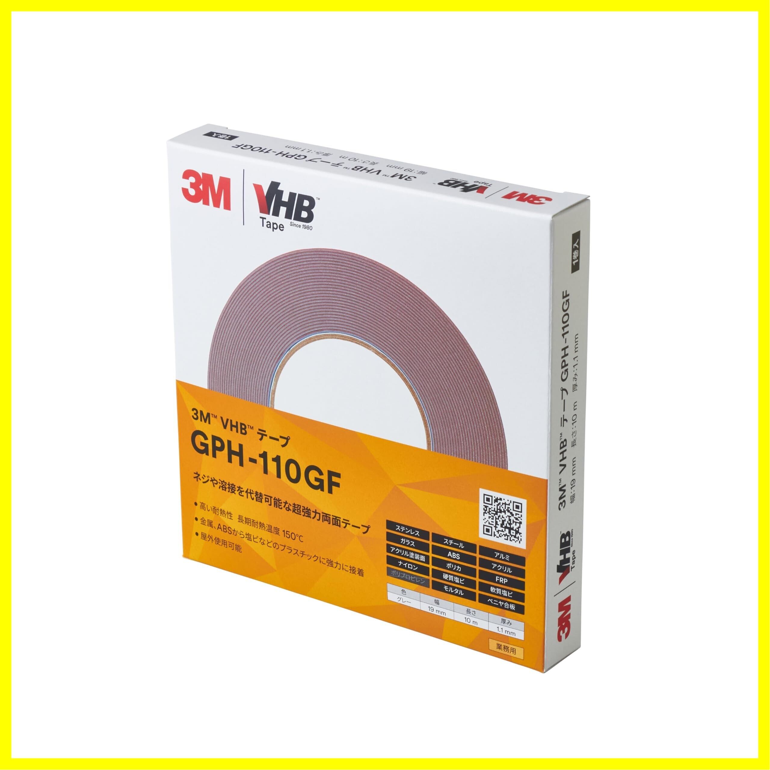 3M 屋内 屋外 高耐熱汎用 VHB テープ GPH-110GF, グレー, 19 mm x 10 m, 1.1 mm厚