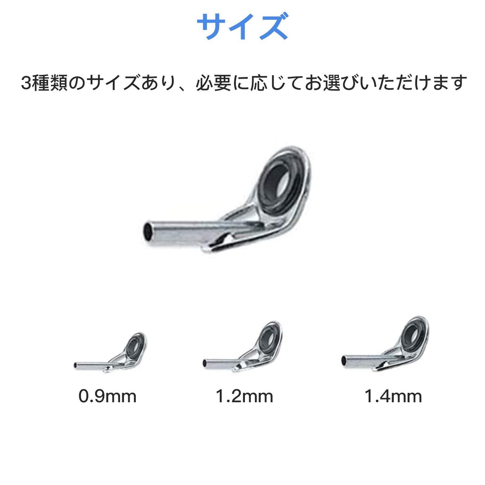 トップガイド 15個セット ロッドガイドステレンス 釣り竿穂先 交換 修理キット ロッドの修理 0.9mm、1.2mm、1.4mm