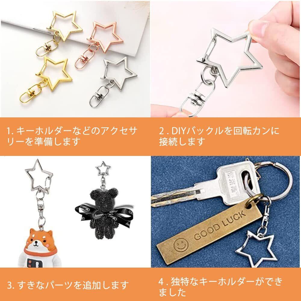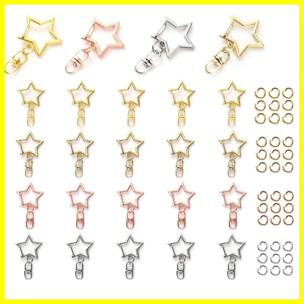 星 ナスカン キーホルダー金具 24個セット 回転カン付き 丸カン付き ワンタッチキーホルダー カワイイ DIY用パーツ 手作り 手芸用品 ハンドメイド キーリング アクセサリー 全長42mm(4色)