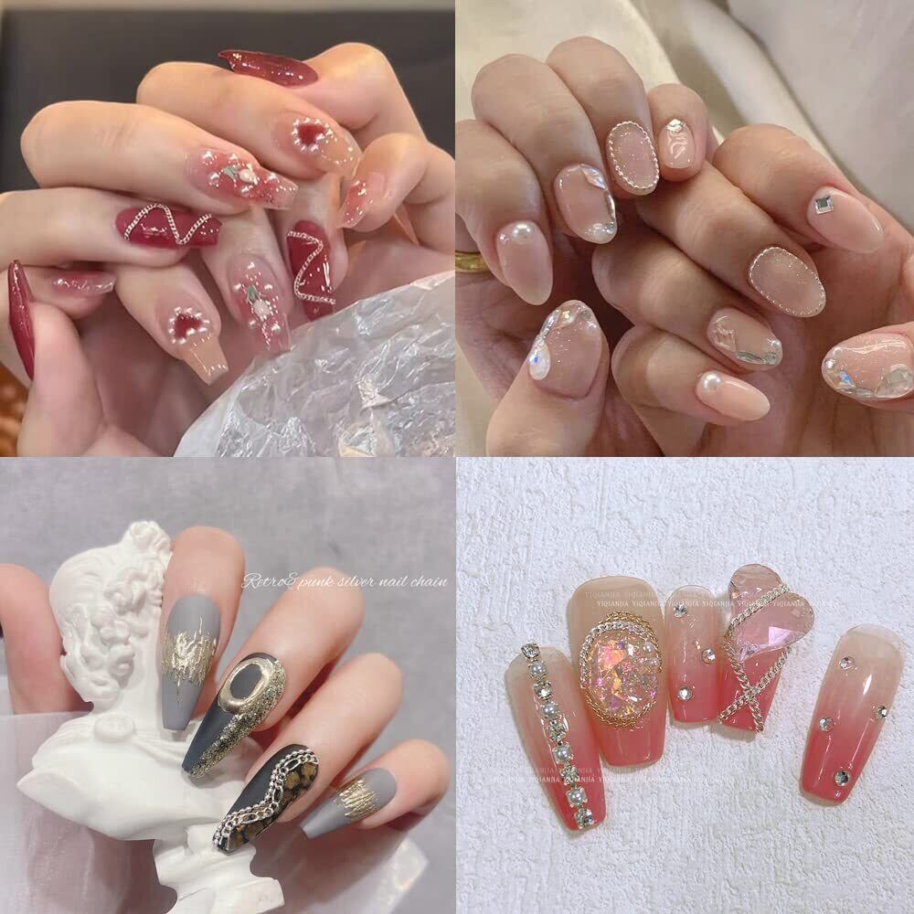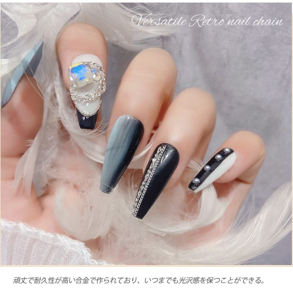【自由にカット】ハサミでカットしやすく、ご指先に合わせて適切な長さを自由にカットすることができます。ご注意:ネイルチェーンが細かくて、カットする時はぜひお気をつけてください。