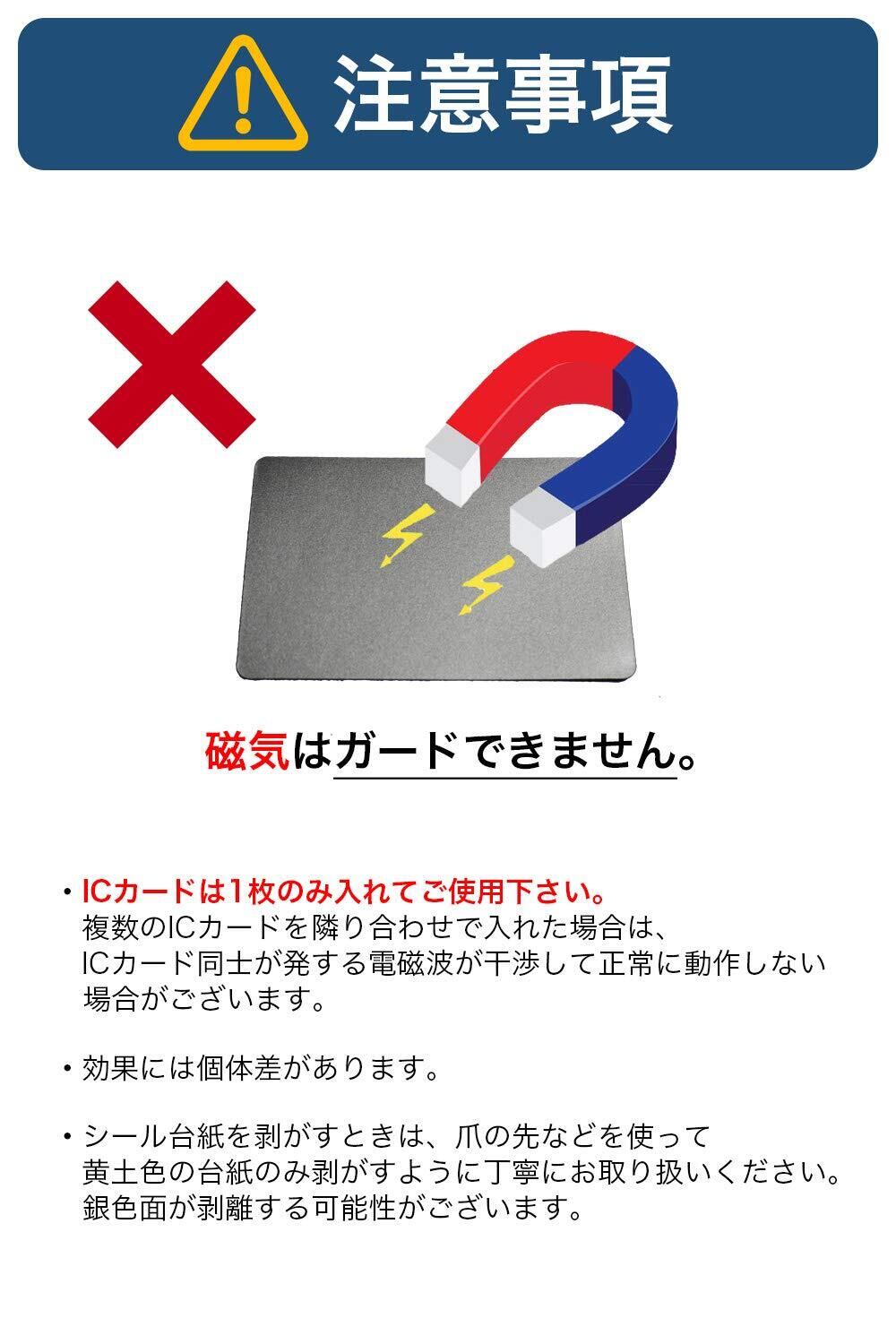 【サイズ】横8.4cm x 縦5.3cm。厚さ0.2mm。1.2 g / 枚。【素材】電波吸収性のある磁性素材を使用。【同梱品】本シート x セット枚数分