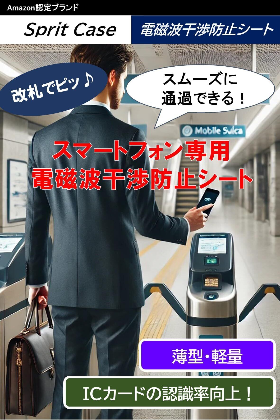 スマートフォンが発する電磁波を吸収することで、ICカードが認識できない症状を解消します。