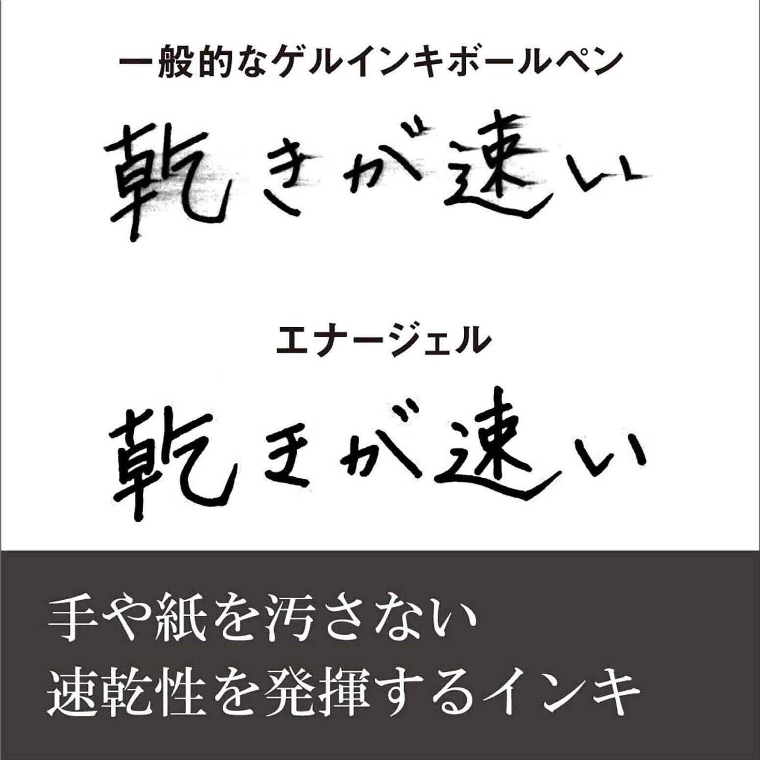 紙に素早く浸透し、優れた速乾性を発揮するエナージェルインキは、筆跡で手を汚しにくいインキです。