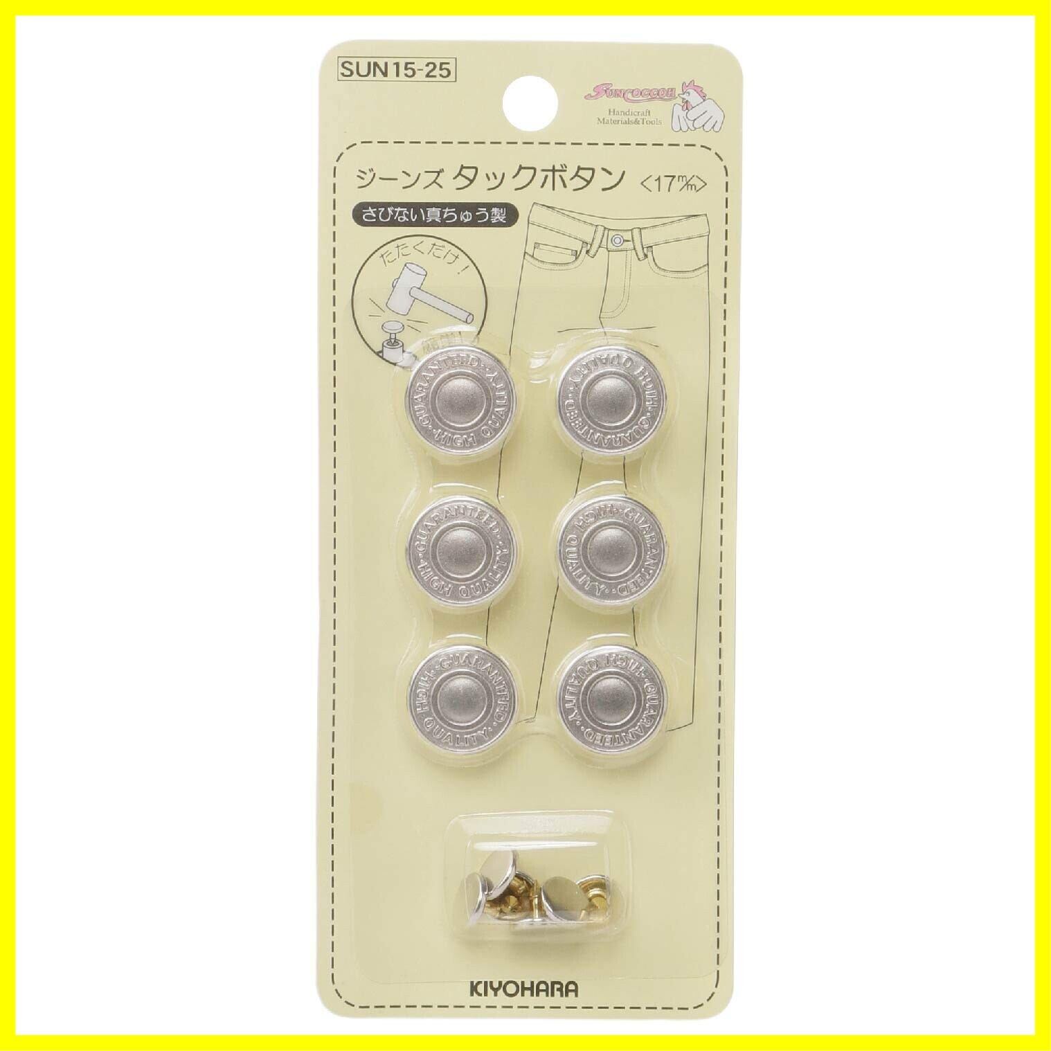 KIYOHARA サンコッコー ジーンズタックボタン 6組 直径17mm マットシルバー SUN15-25