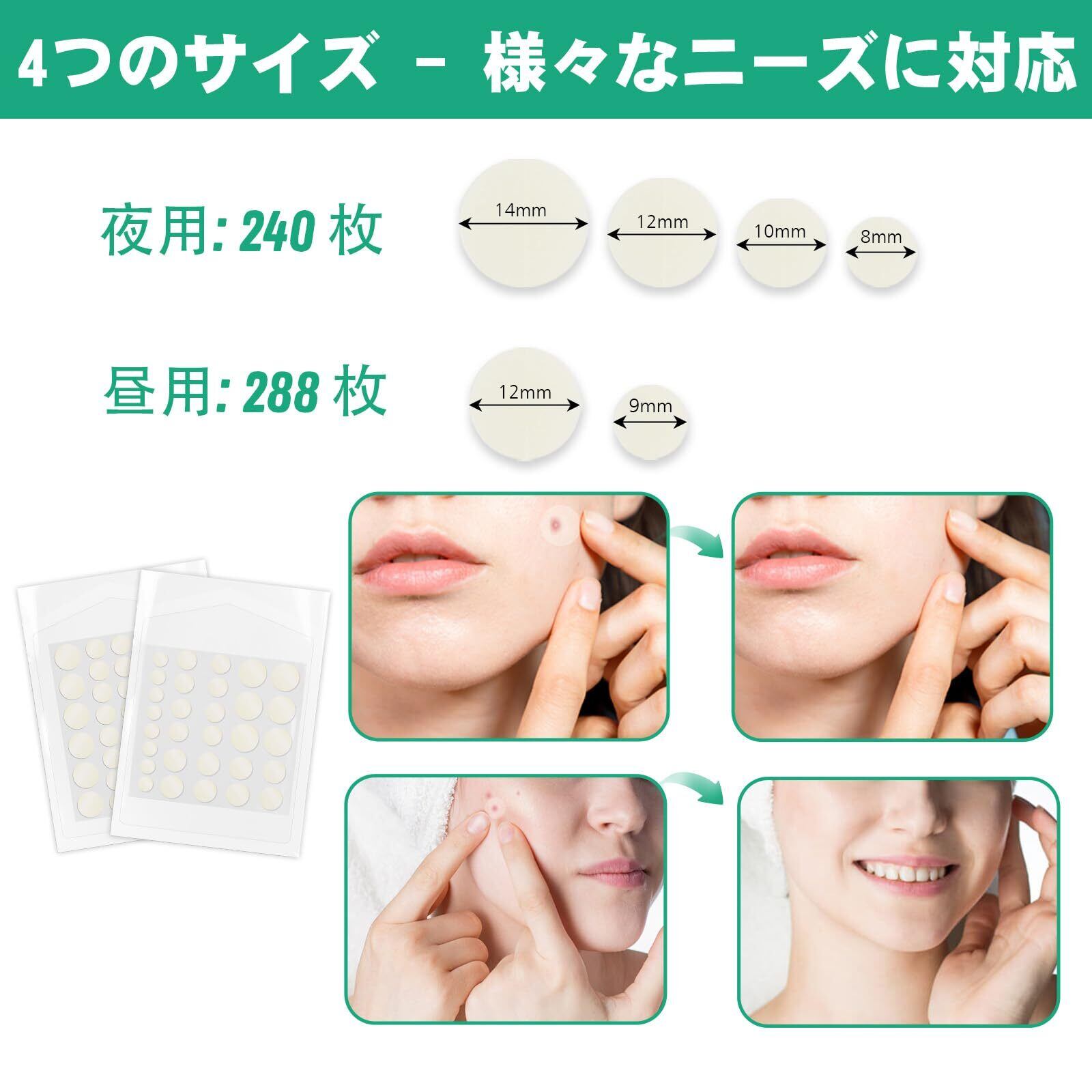 スポットパッチ 薄型 264/528枚敏感肌 肌荒れケア pimple patch 大容量 cica パック 昼用+夜用 (528)
