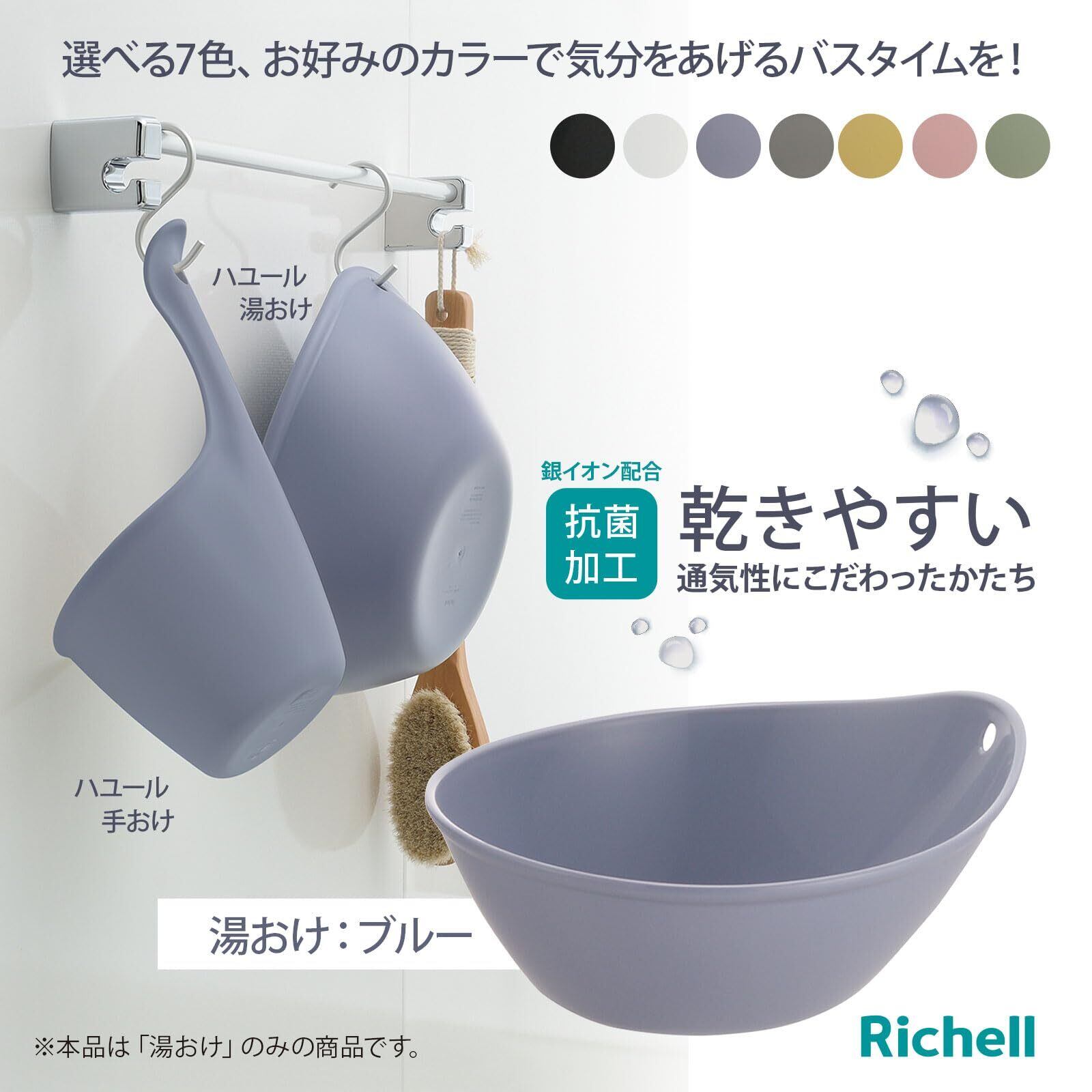 リッチェル 湯桶 ハユール ウオッシュボール ブルー 日本製 抗菌加工 風呂 浴室 洗面器 シンプル おしゃれ フック穴付 風呂おけ 湯おけ バス用品 浴室用品 銀イオン 101912