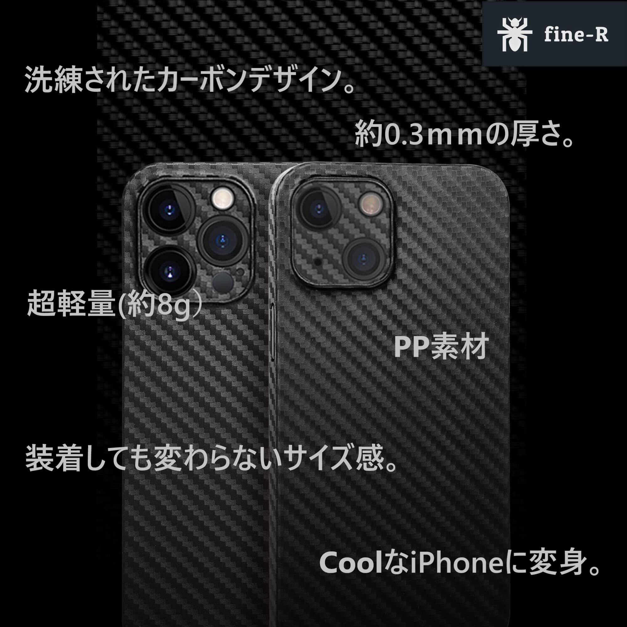 fine-R iPhone13 用 極薄 超軽量 Air Skin カーボン デザイン ケース カバー 裸感覚 0.3mm 8g 薄型 軽量 さらさら マット 指紋防止 PP素材 全面保護 レンズ保護 モデル (カーボン 13)