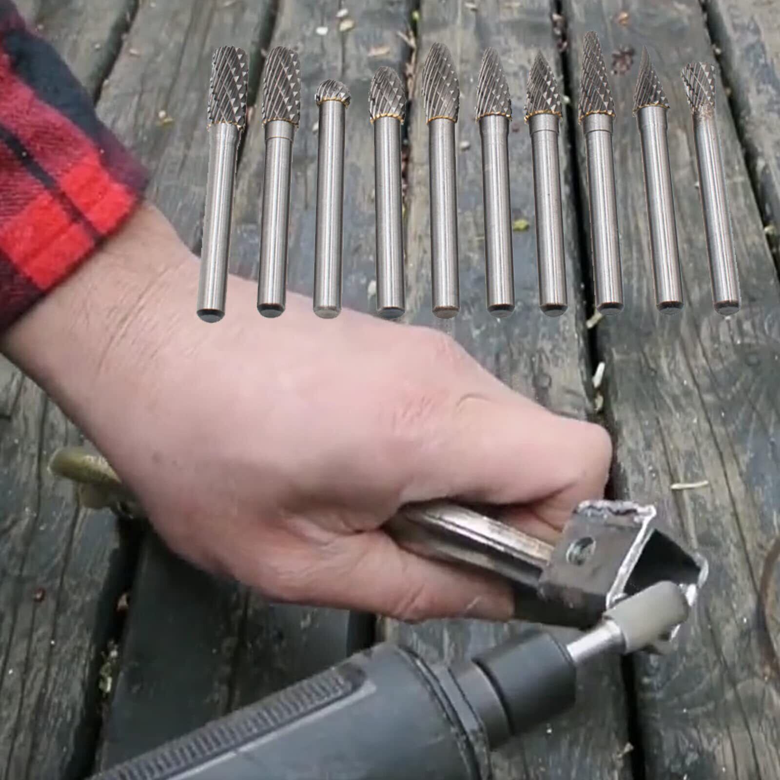 Bestgle超硬バー リューター ビット10本セットドリル カッター ダブルカット 超硬タングステンバー 6mm ロータリーバー タングステン鋼のロータリー超硬ドリルビット高速度 工具 切削 研磨用 (6mm軸 刃幅6mm)