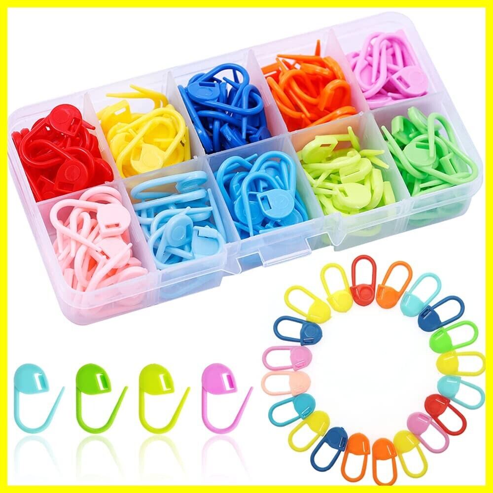 【LAXIR】段数マーカー 編み物 ステッチマーカー プラスチック 段数リング カラフル 編み物 マーカー 編み物用品 安全ピン 手芸 毛糸 DIY 工具 携帯に便利 収納ケース付き (120枚セット10色)