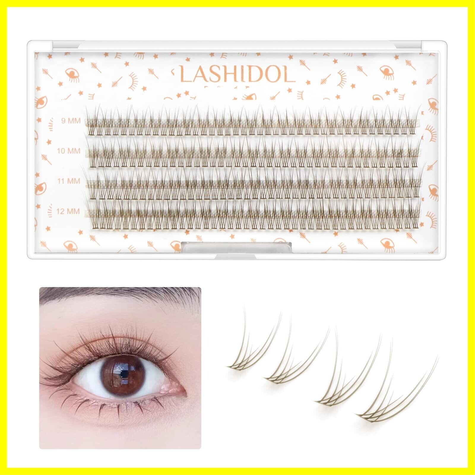 LASHIDOL 部分つけまつげ マツエク セルフ つけまつげ ナチュラル 人気 DIY つけまつ毛 簡単 9~12 mm(桜) (フィッシュテールまつげ, ブラウン)