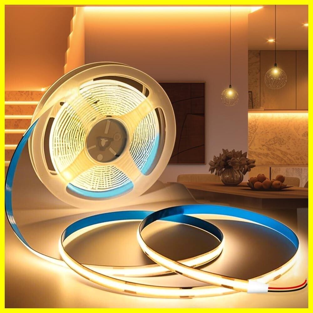 SPAHER LEDテープライト COB 高輝度 幅8mm 両面テープ ストリップライト 切断可能 間接照明 DIY 飾り プラグなし 24V(電球色 10メートル)