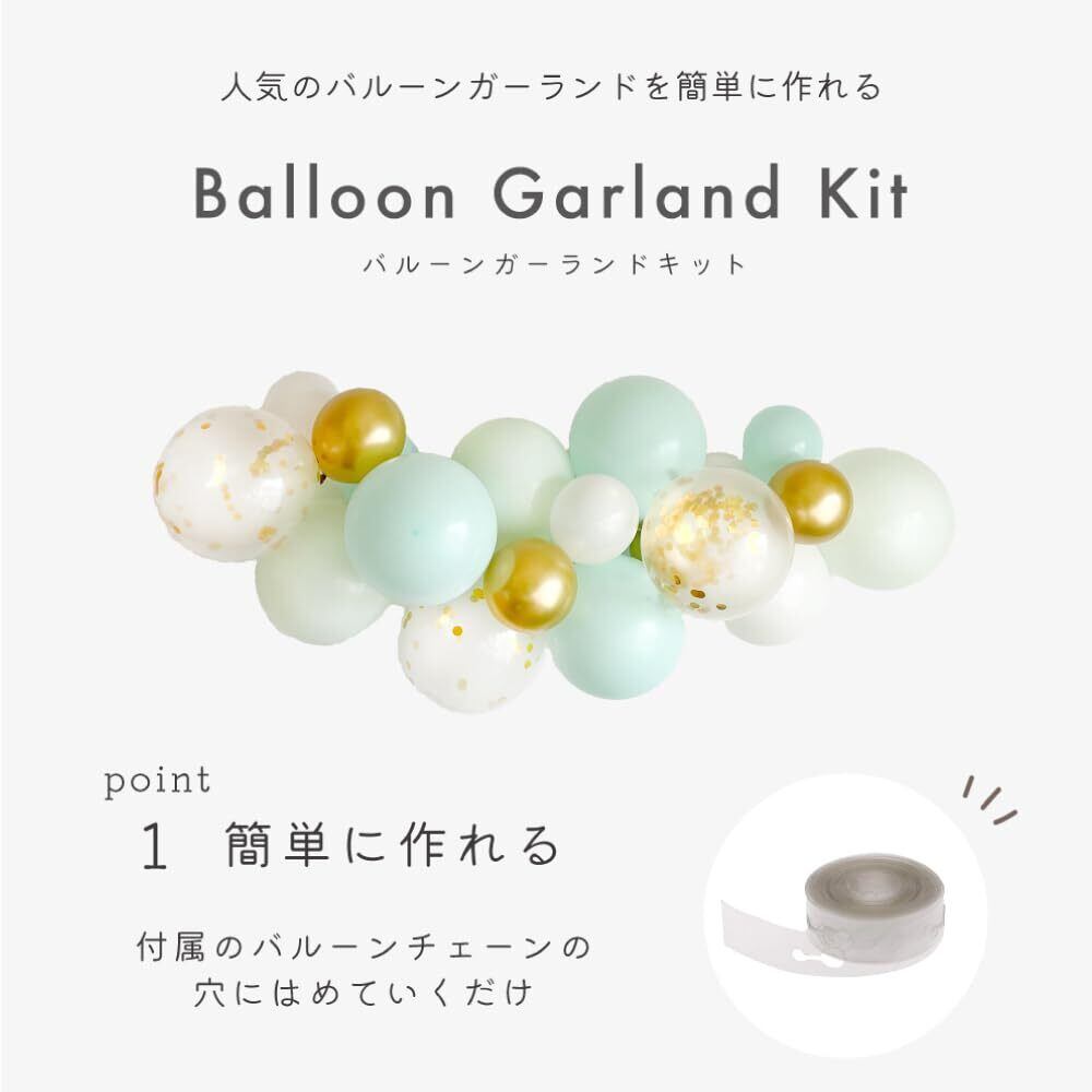 【プロ人気の装飾が簡単に】大小様々なバブルが合わさったようなカワイイ、バルーンガーランド 今世界的に大注目のデコレーションとなっています。従来の作り方ですと難しかったバルーンガーランドですが Hanameiのバルーンガーランドキットは付属のバルーンチェーンに空いた穴に、膨らませた風船の結び目をポコポコはめるだけでOK! とってもかんたんにボリューム満点でかっこいいバルーンガーランドが完成します!