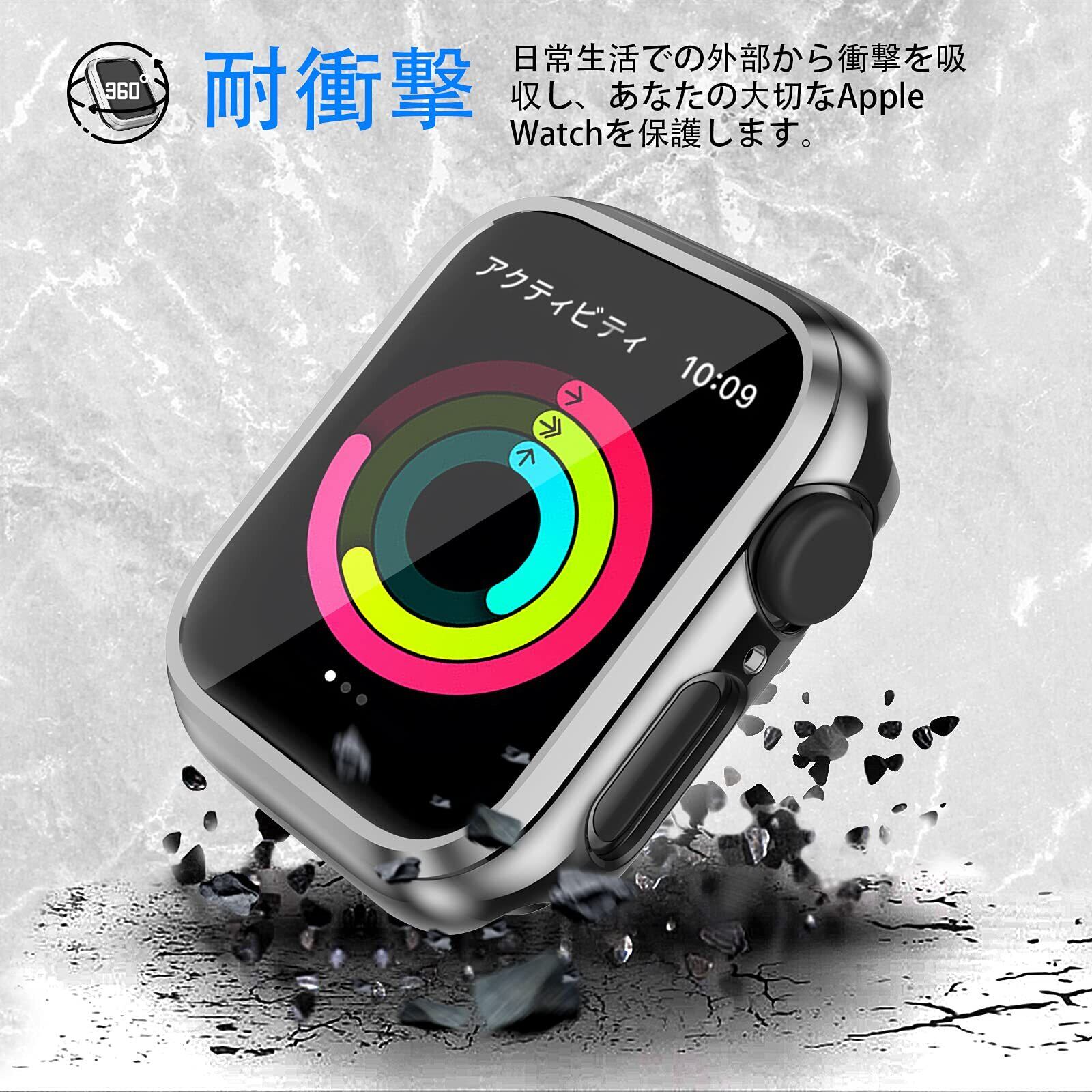 コンパチブル Apple Watch ケース Series SE2/SE/9/8/7/6/5/4 40mm PC+TPE材質 保護ケース 高耐久 耐衝撃 コンパチブルアップルウォッチ ケース超軽量 保護カバー シルバー