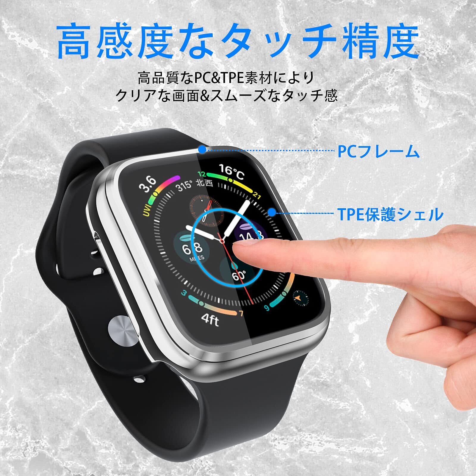 【PC+TPE素材】:上質な手触り感良いTPEとPC素材を採用して作ったケース。傷や汚れ、外部の衝撃からウォッチをしっかり保護します。