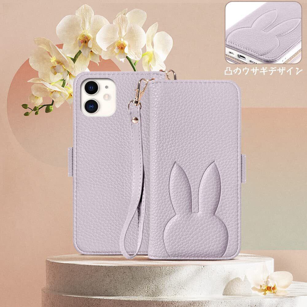 iPhone 12 mini ケース 手帳型 おしゃれ iPhone12 mini 手帳型 ケース可愛い かわいい iphone12ミニ ケース 女性 人気 兎 ストラップ付き アイフォン12mini 携帯カバー アイフォン12mini ケース手帳型 カード収納 アイフォン12ミニ ケース アイフォン12mini ケース 高級PUレザー 横置き機能 5.4 inch,パープル