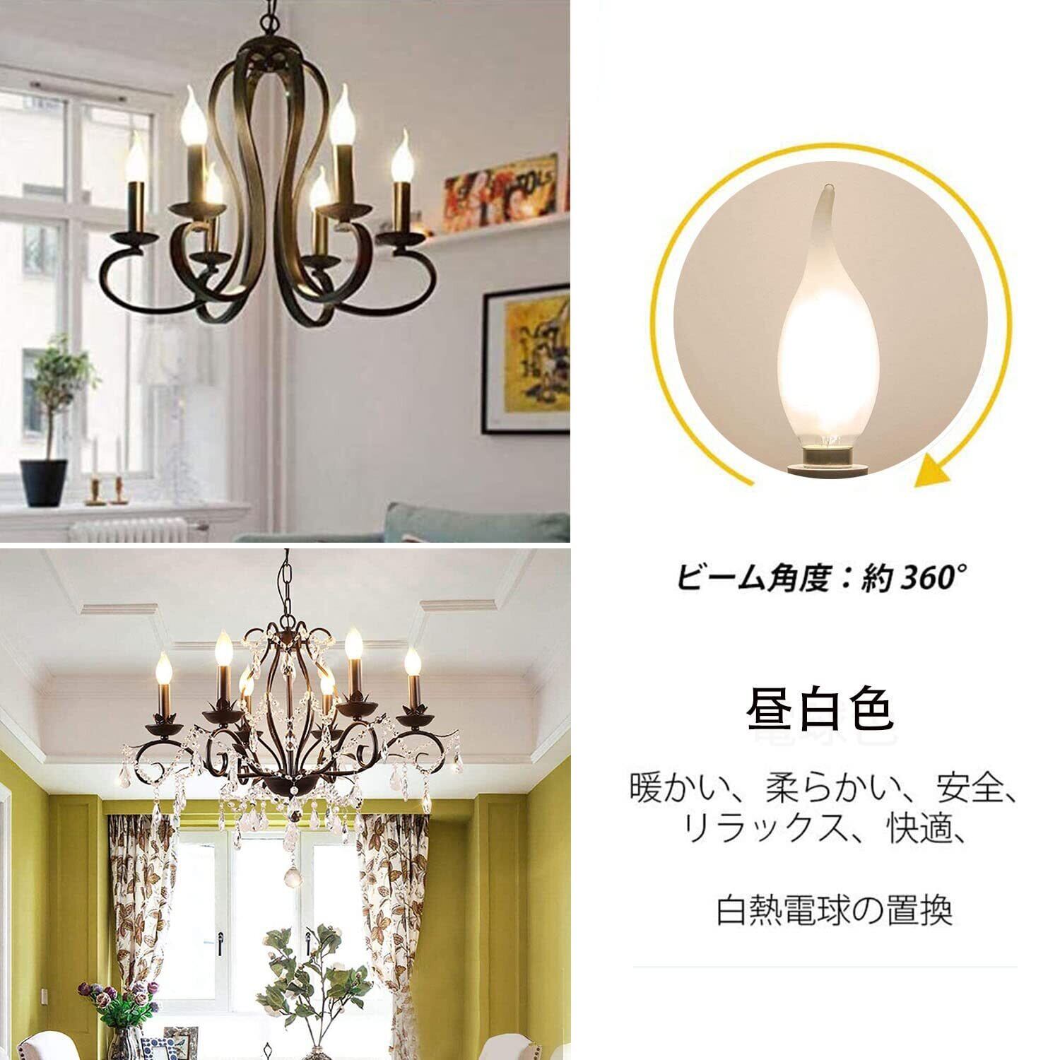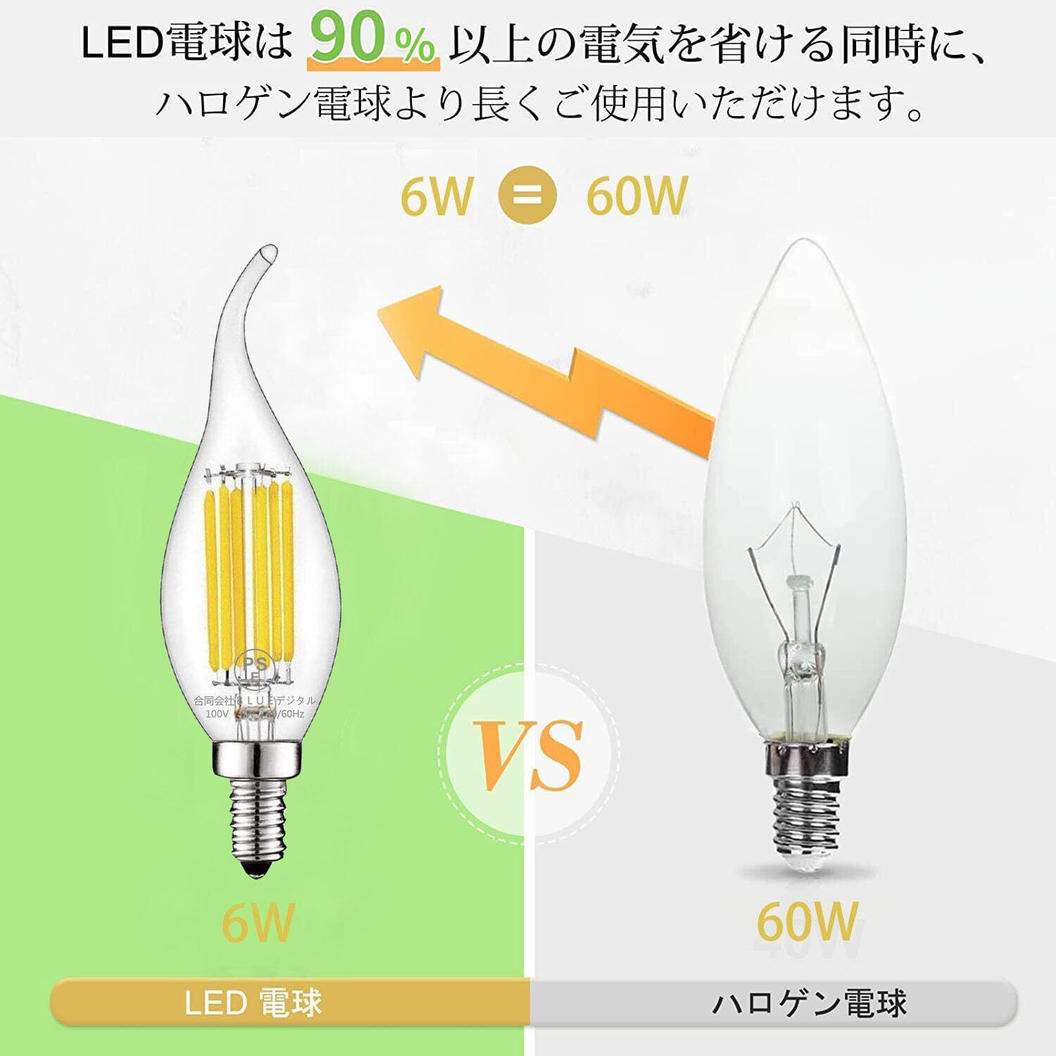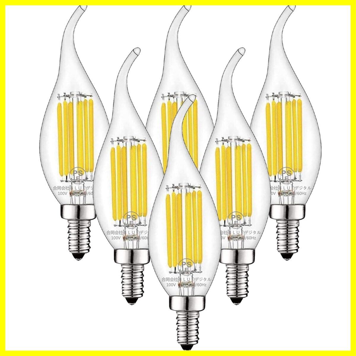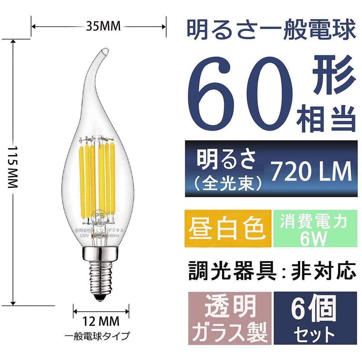 シャンデリア電球 E12 LED電球 60W形相当 昼白色 6W フィラメント電球 4000K 720lm 広配光 蝋燭型 クリアタイプ PSE認証 調光器非対応 6個入 (E12口金, 昼白色)…