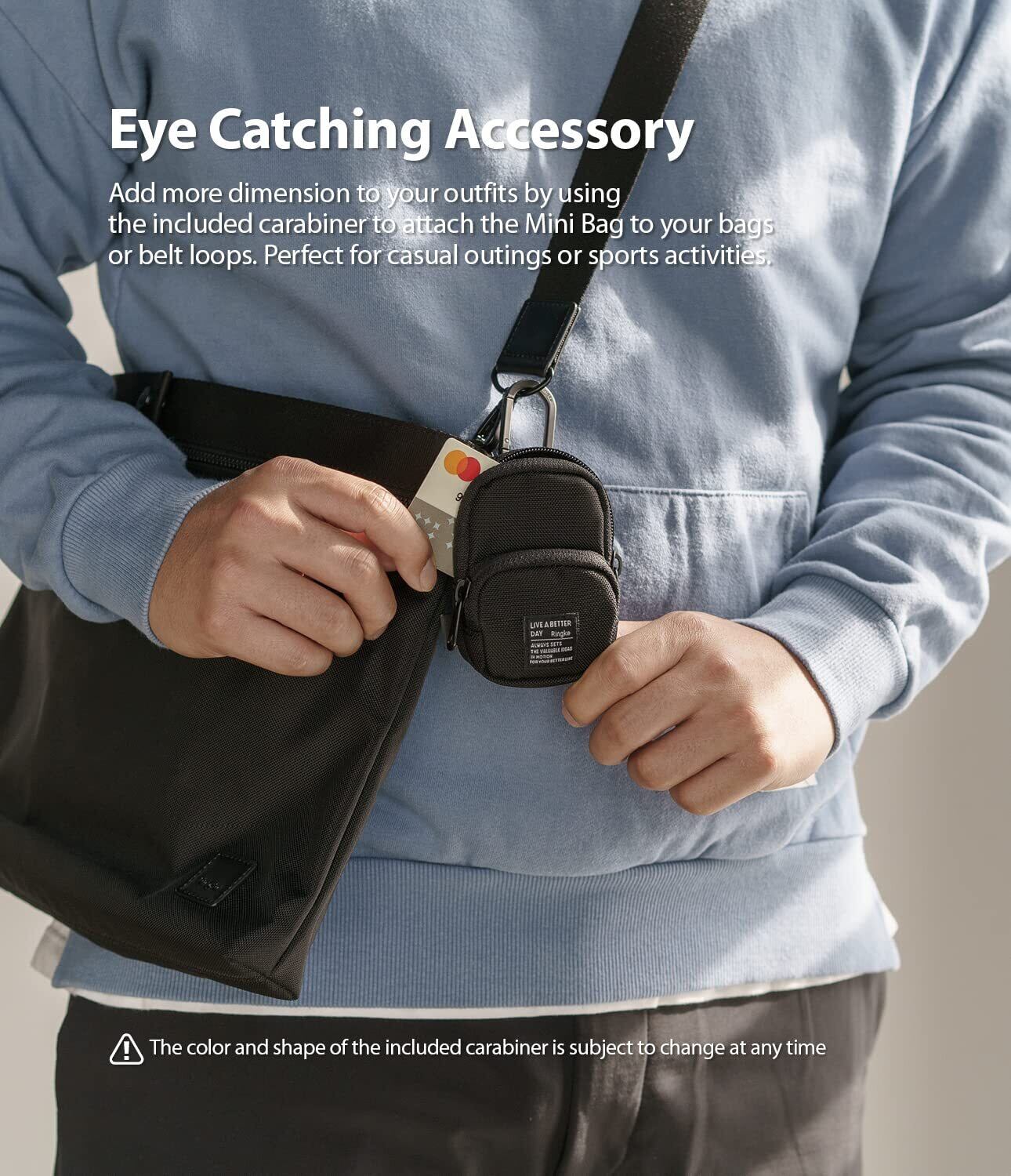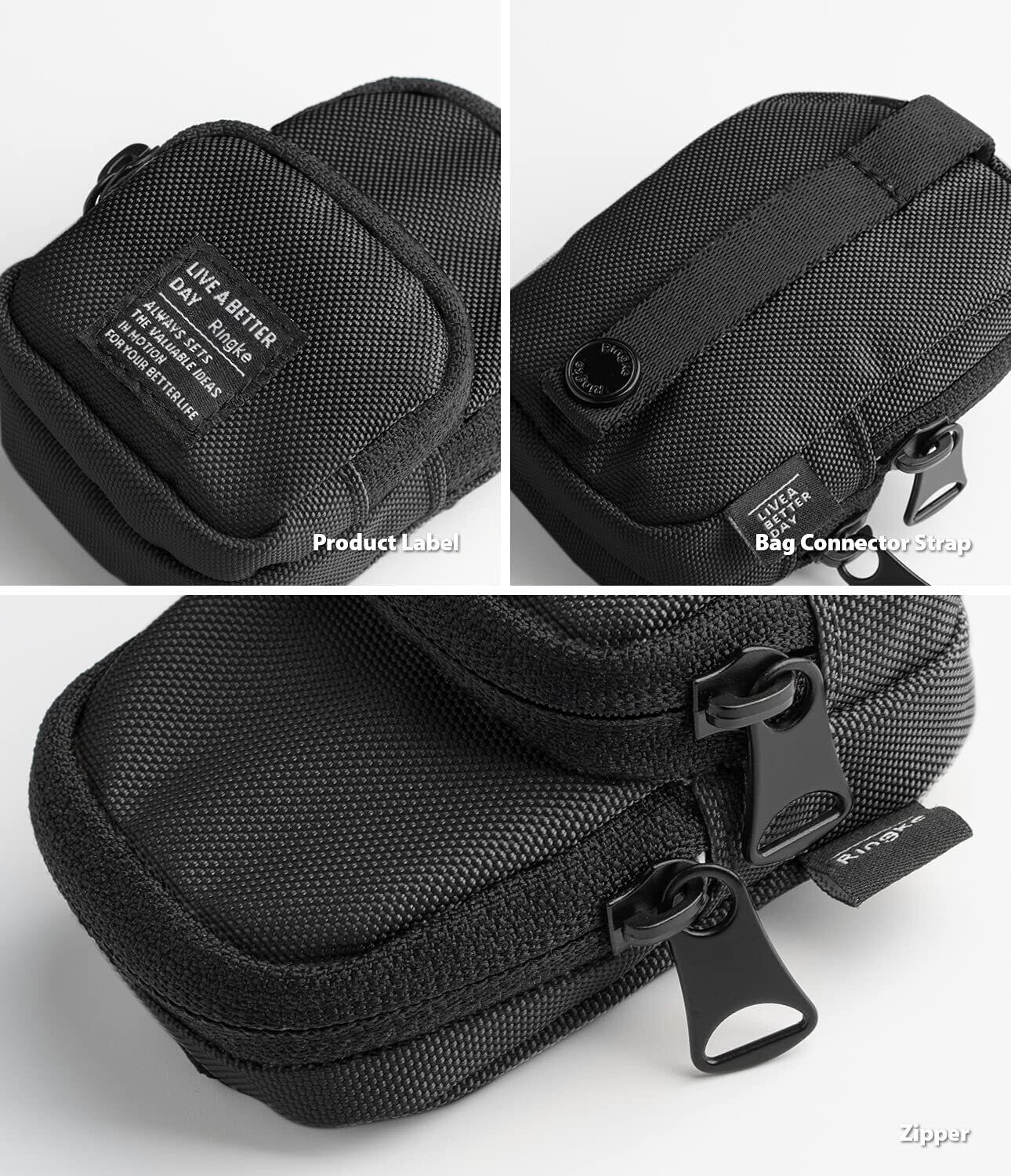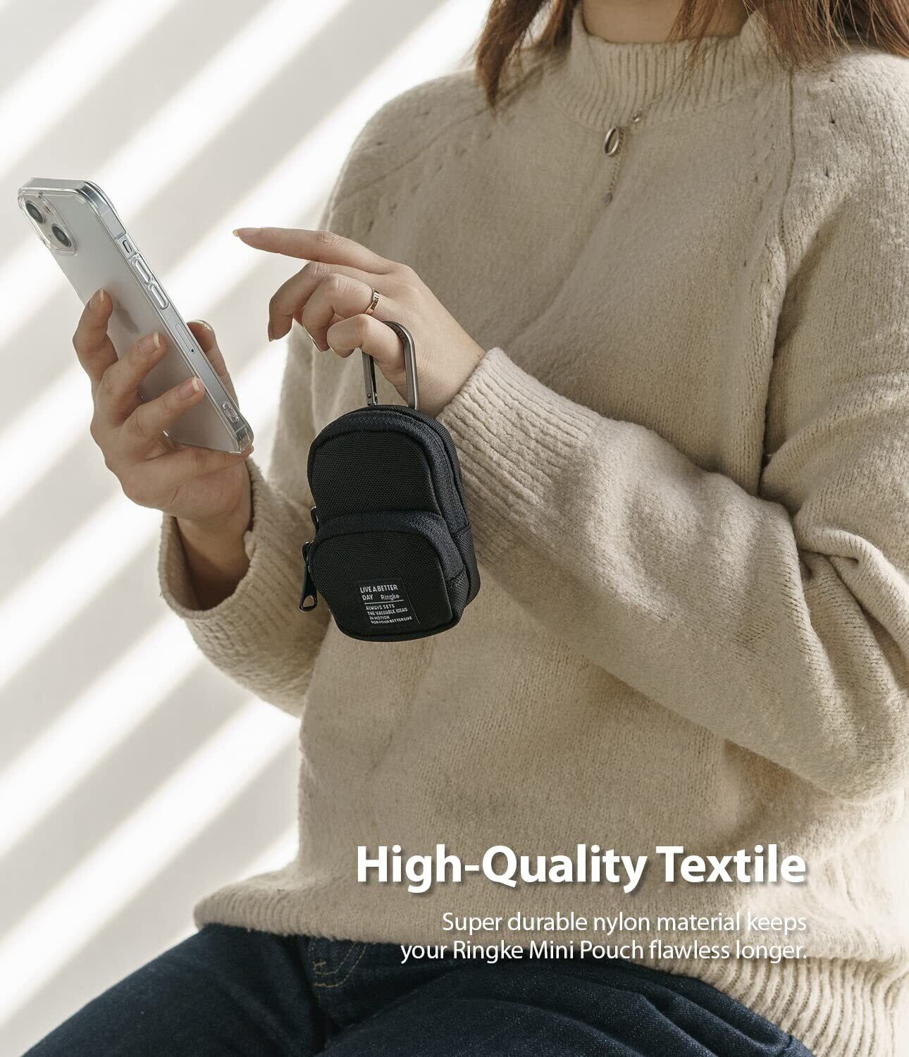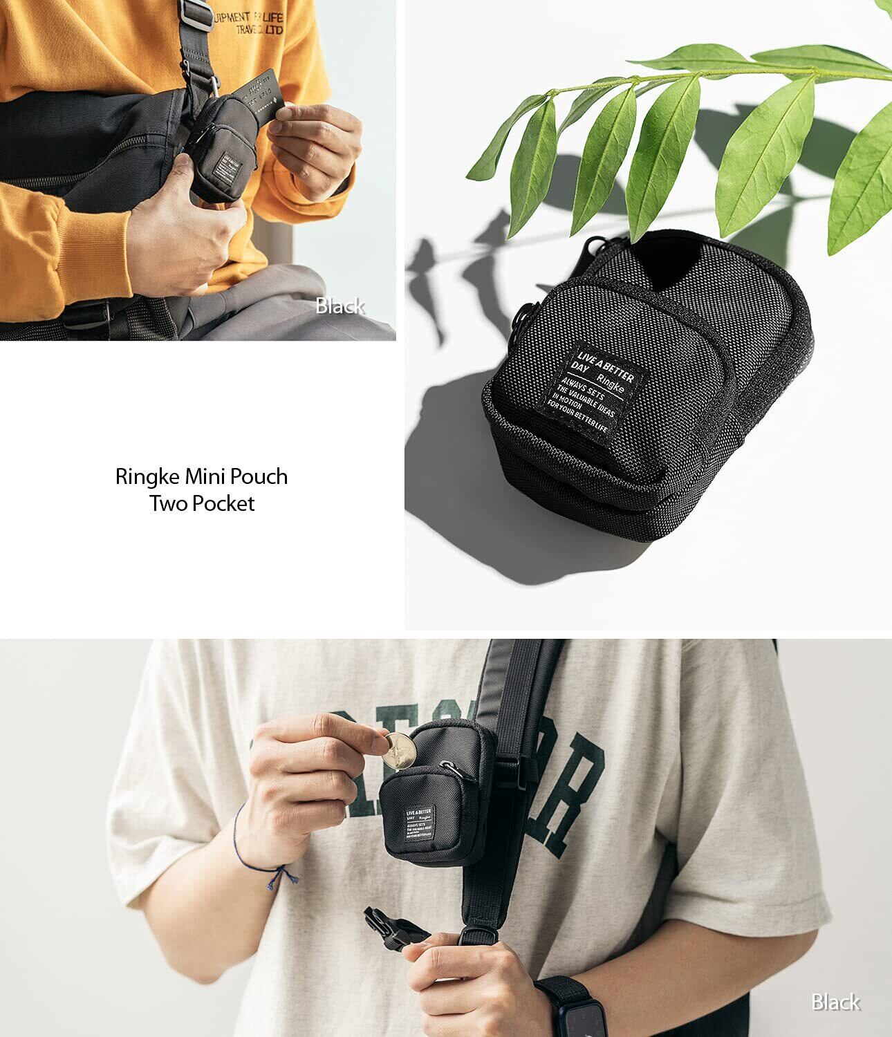 【Ringke】MINI POUCH TWO POCKET イヤホンケース 現金 コイン入れ イヤホンポーチ ミニポーチ ミニバッグ ミニボックス ポーチ ケース (カラビナ付き) - Black