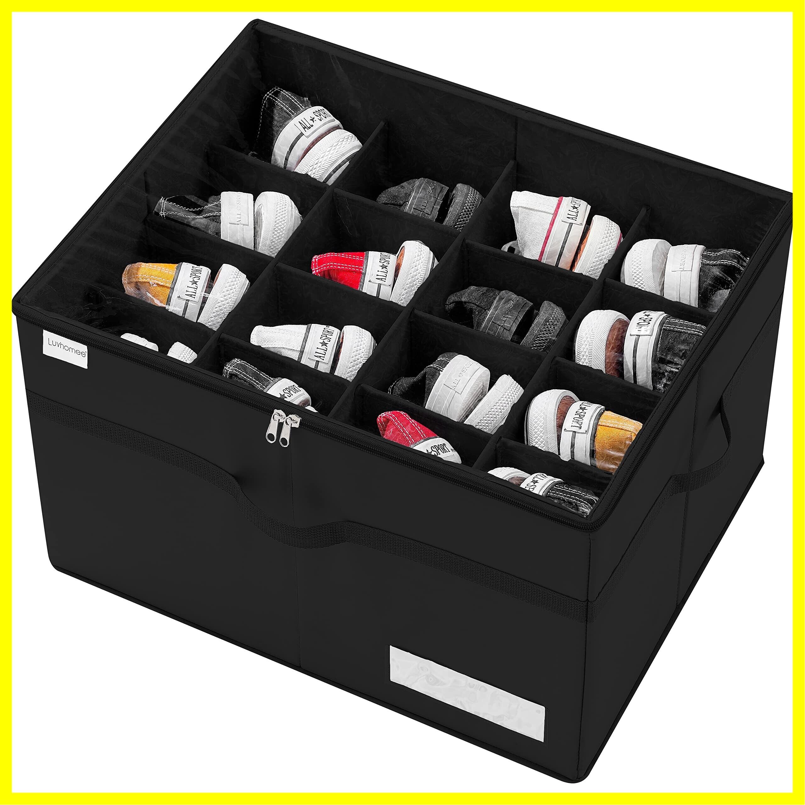 Luvhomee 靴 収納 シューズケース シューズ スニーカーボックス 靴箱 蓋付き収納ボックス 靴 箱 棚 収納 ケース 大容量 靴置き シューズラック 省スペース 16組に対応 折りたたみ 取っ手 透明窓付き ブラック