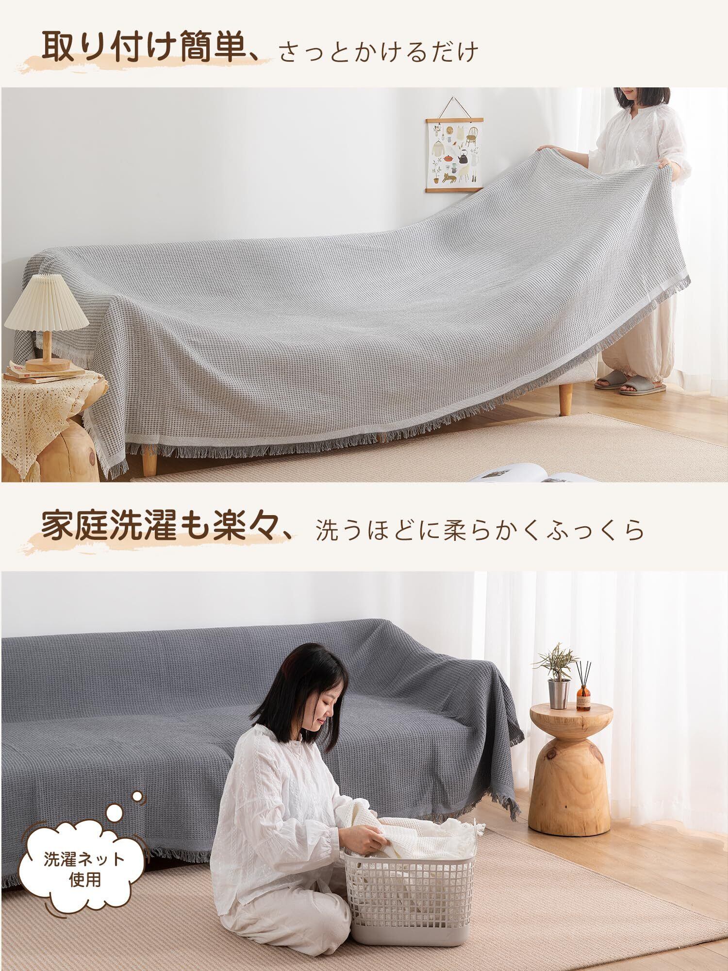 ・【幅広い使用範囲】かけるだけでソファー全体をカバーでき、防塵やキズ防止などの機能があり、ソファーをしかっりと保護できます。多機能で、ベッドカバー、テーブルクロス、冷房毛布、ひざ掛け、防塵カーペット、キャンプカーペット、旅行毛布などとして一年中活躍できます。