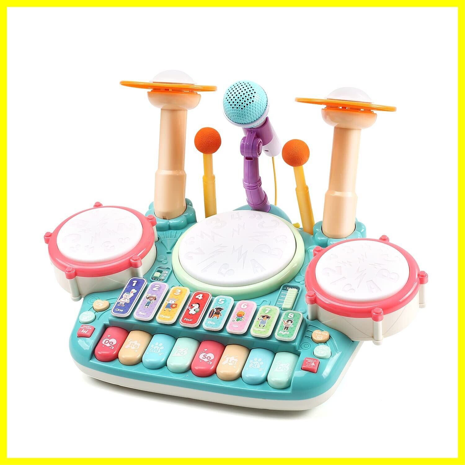 【子供ための音楽教育】小さなミュージシャンのための完璧な学習音楽おもちゃになります。子供の音楽への興味を高め、子供の目と手の協調を強化し、ドラムを叩いてピアノキーボードを演奏することにより、細かい運動能力と聴覚感覚を発達させます。