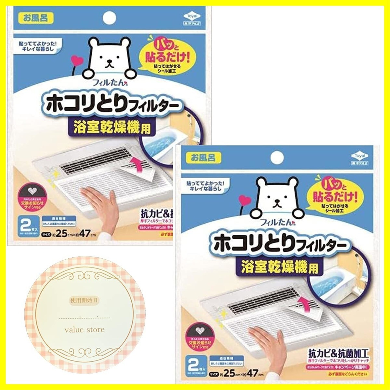 東洋アルミ パッと貼るだけ ホコリとりフィルター 浴室乾燥機用 2枚入 【X2個セット】 約25cm x 約47cm おまけ オリジナルシール付
