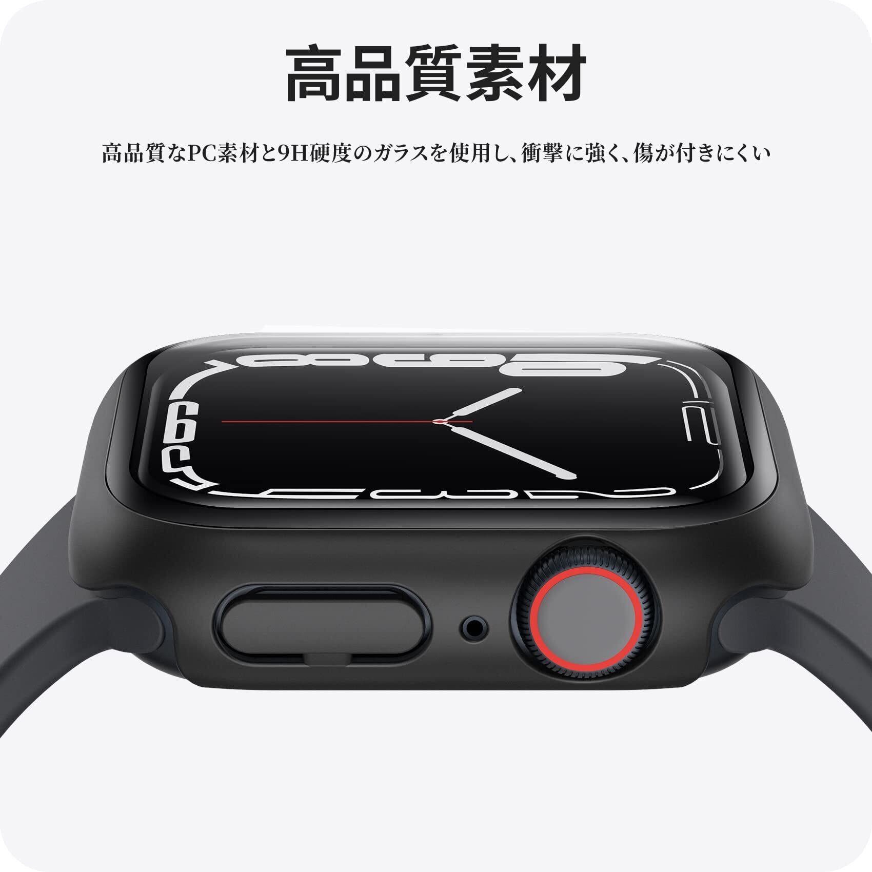 NIMASO 対応 Apple Watch Series 9 / 8 / 7 45mm 用 ケース 対応 アップルウォッチ 9 / 8/ 7 45mm apple watch7ケース 保護カバー ガラスフィルム 一体型 PC素材全面保護(ブラック) NWC21J358