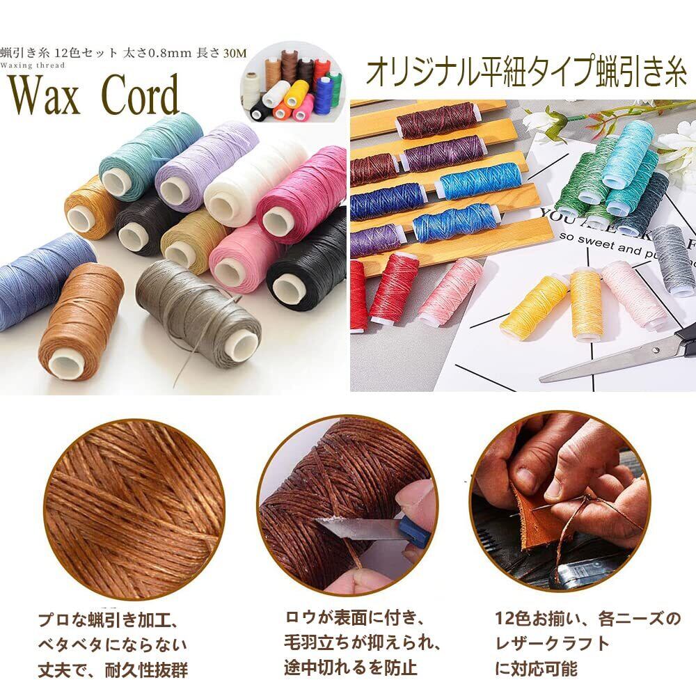 蝋引き糸 ロウビキ ワックスコード 蝋引き紐 レザークラフト 工具 12色 手縫い 編み 手芸 紐 DIY 糸 ろう引き糸 (30MーC)