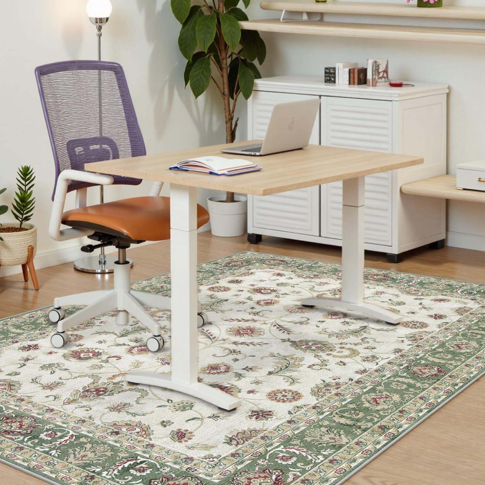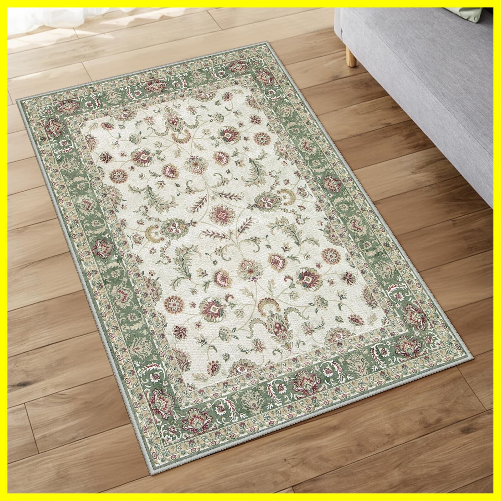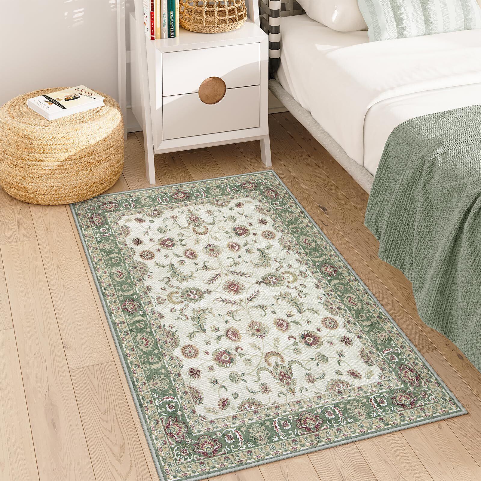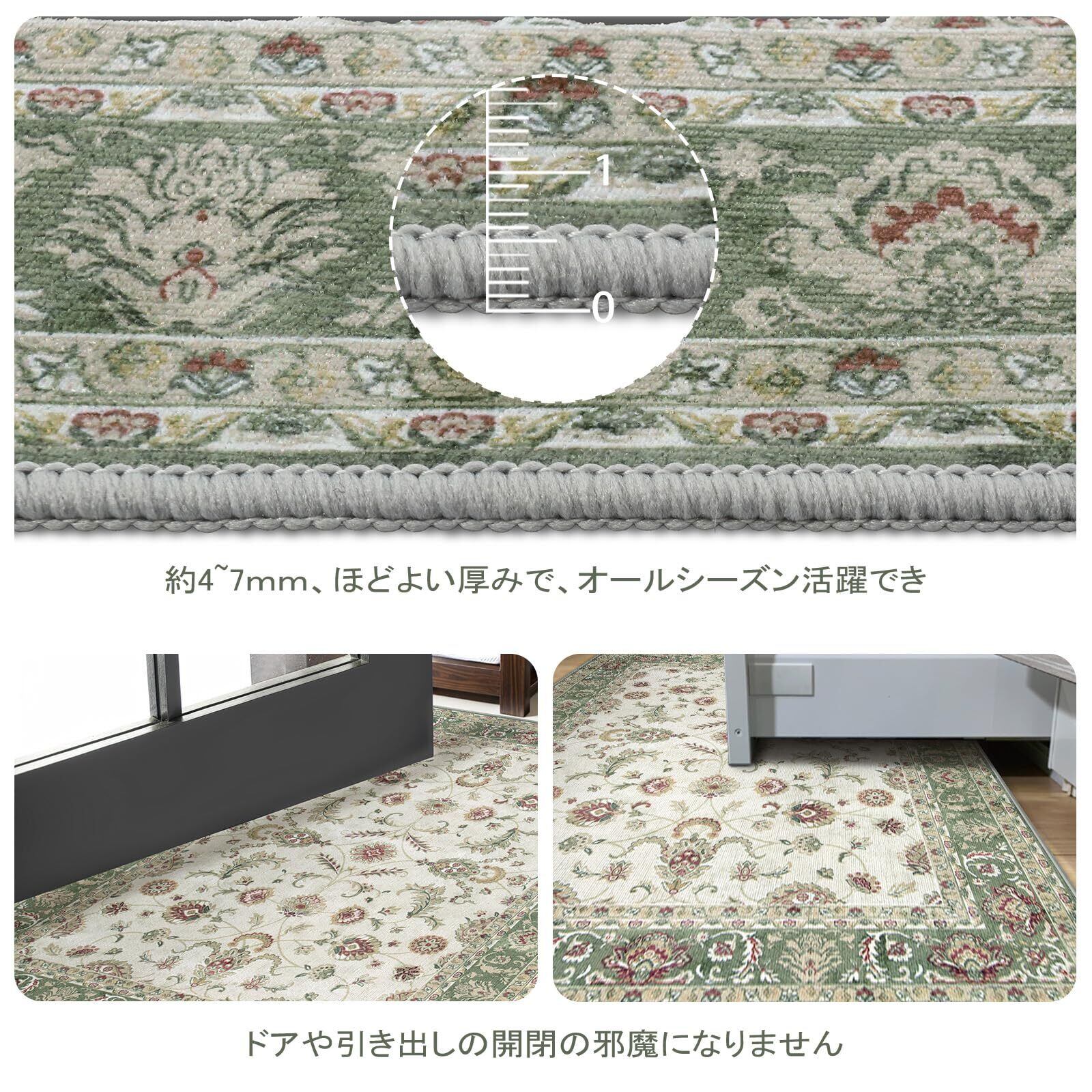 HAOCOO ラグ ペルシャ絨毯風 90х150cm おしゃれ 約1畳 洗える カーペット 長方形 耐磨耗性 滑り止め ホットカーペット対応 防音 室内用 ラグマット シェニール オールシーズン適用 抗菌防臭 軽量 花柄 グリーン
