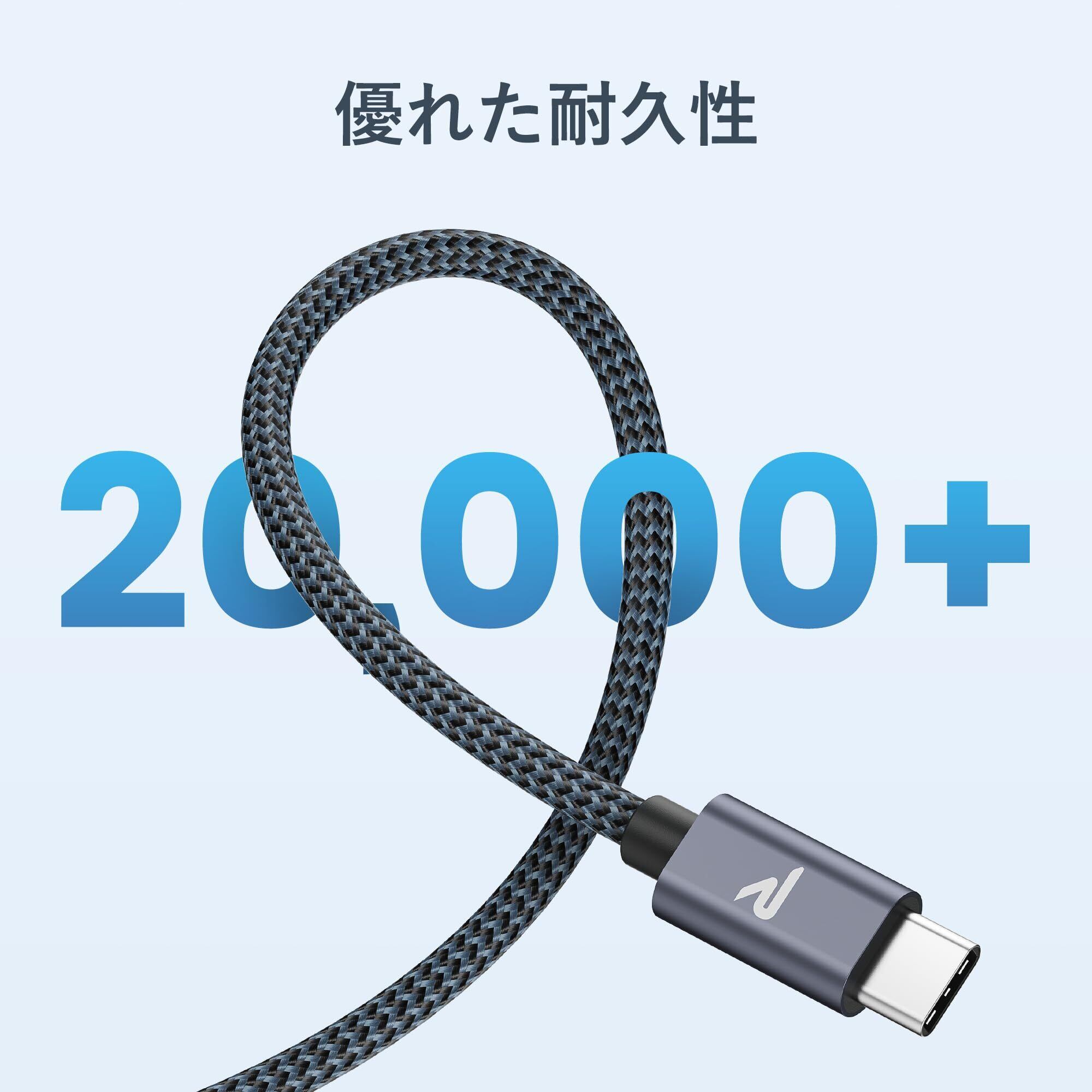 【耐久性と柔軟性を両立】ナイロンの二重編み込み素材を採用し、丈夫で信頼性の高いUSB Cケーブルを提供します。20,000回以上の曲折テストにたえて、頻繁な挿抜や長時間の使用にも耐えられます。