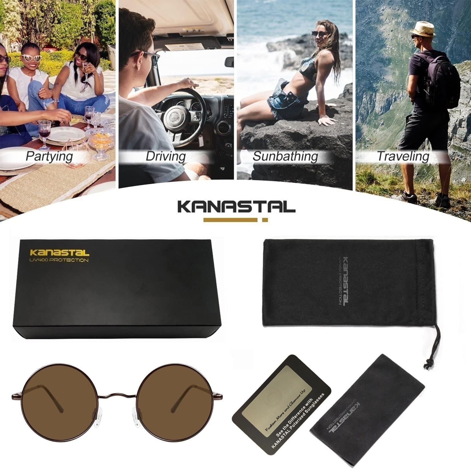 [KANASTAL] サングラス 丸 メンズ 丸型 ラウンド レディース クラシック デザイン ファッション UVカット 軽量 偏光 運転用 さんぐらす