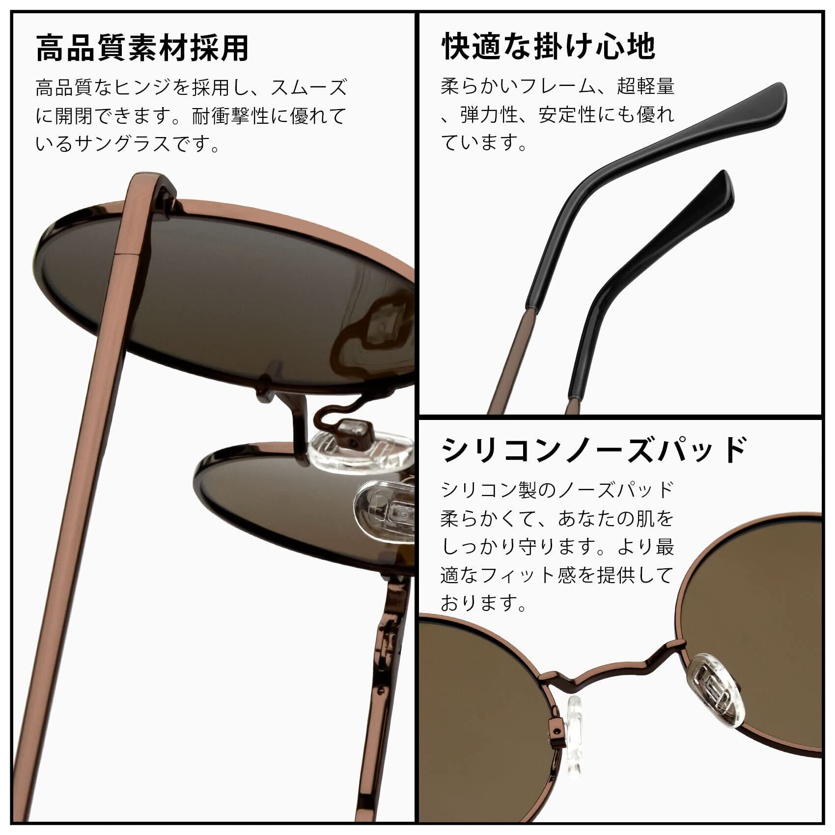 ファッション丸型 : 高品質の金属フレームとTACレンズを採用しております。シンプルで、クラシックなデザインで、こちらの丸型サングラスを掛けるだけで、オシャレな雰囲気を演出してくれます。ファッションアイテムや日常着用に出来、様々なスタイルに合わせやすいです。性別問わず、ユニセックスで使用出来るラウンドサングラスで