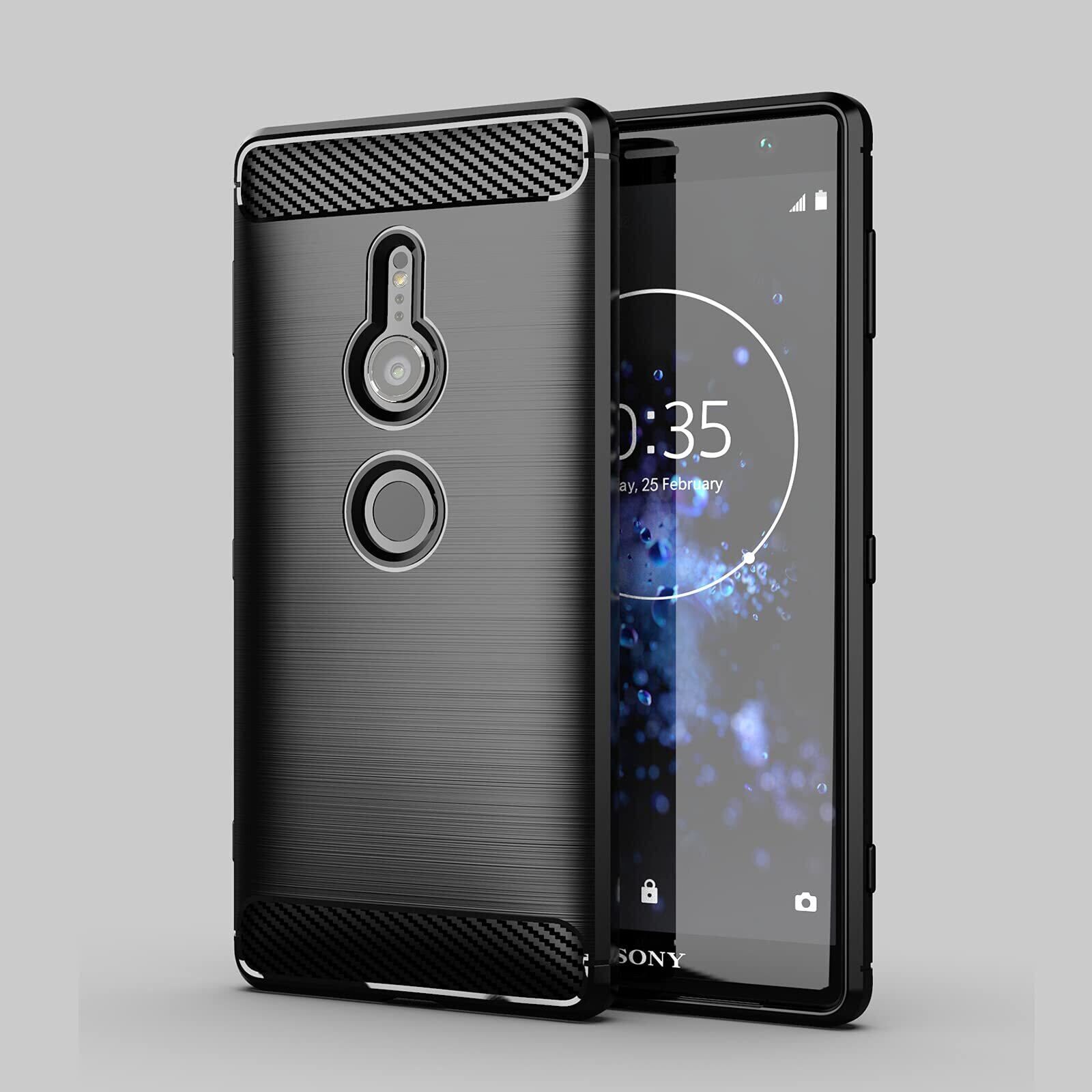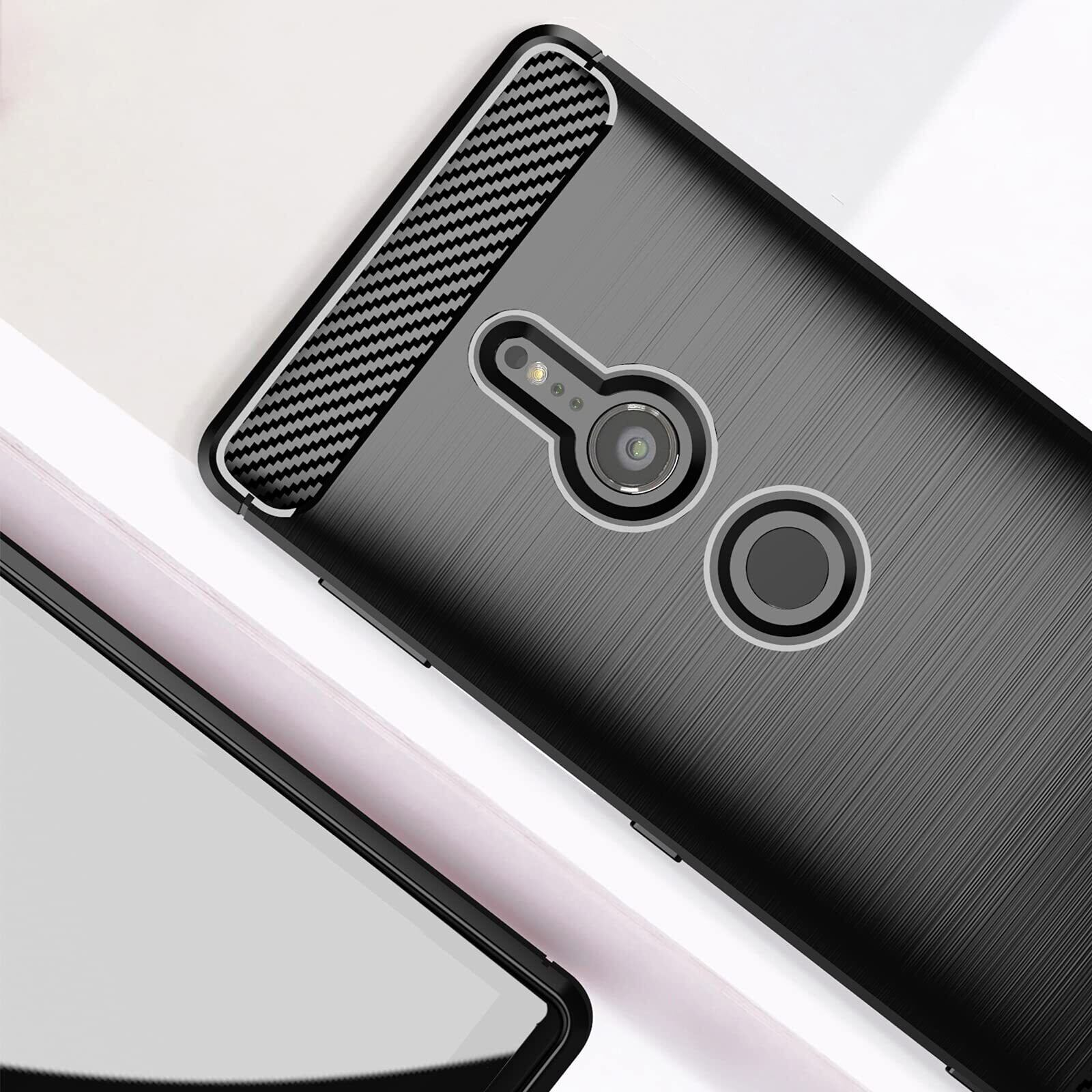 【UNEED】Xperia XZ2 用の スマホケース SO-03K/SOV37用の ケース カバー ケース 炭素繊維カバー (素材/TPU) 指紋防止 滑り止め 薄型 軽量 耐衝撃 簡易脱着 ソフトケース カラー:黒